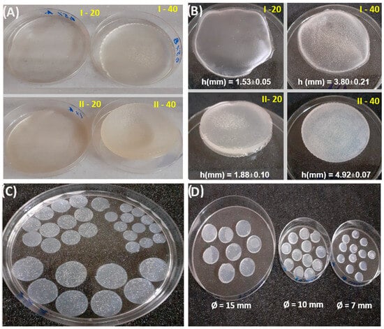 | Solution Codes | Amounts (mL) (Petri Dish, Ø = 90 mm) | Film Thickness (mm) |
