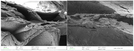 The SEM images of the surface and cross-section of the berberine sustained-release capsule material are shown in Figure 6 and Figure 7.