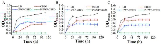 | Strain | CBEO (mg/mL) | EWP-CBEO | P-EWP-CBEO |