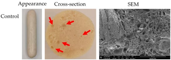 2.3. Appearance and Microstructure of Sausages