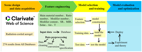 However, despite their promising applications in radiative cooling, the complexity of aerogel preparation remains a significant challenge [9]. Aerogel synthesis involves multiple steps, including sol–gel transformation, aging, and drying processes, each potentially affecting the final product performance. The presence of multiple variables makes traditional trial-and-error optimization methods both inefficient and costly. Moreover, while understanding and accurately predicting the physicochemical behavior of aerogels is crucial for advancing the field, conventional experimental testing and theoretical modeling approaches typically require substantial time [10] and resource investments, significantly increasing research and development challenges.