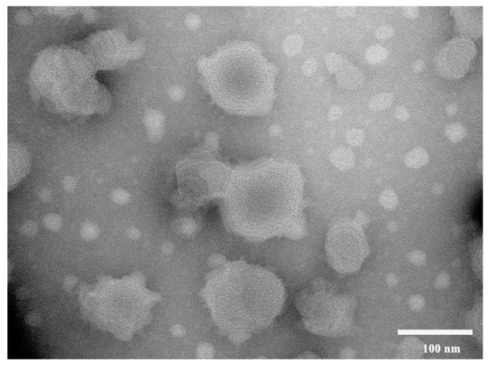 Transmission electron microscope (TEM) image of total flavonoid ethosome from Vernonia anthelmintica (×100 k).