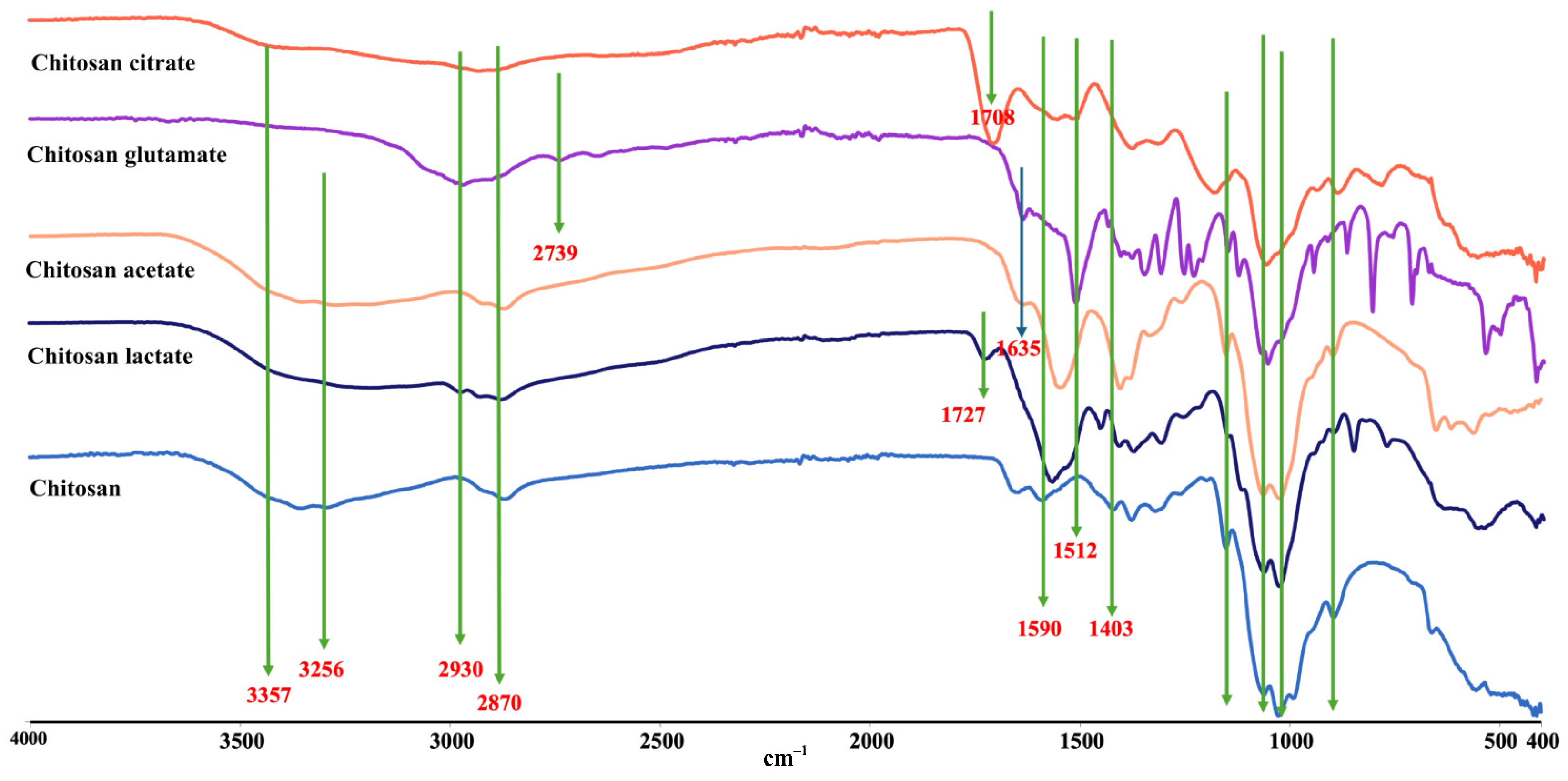 2.2. Characterization of Chitosan Salts