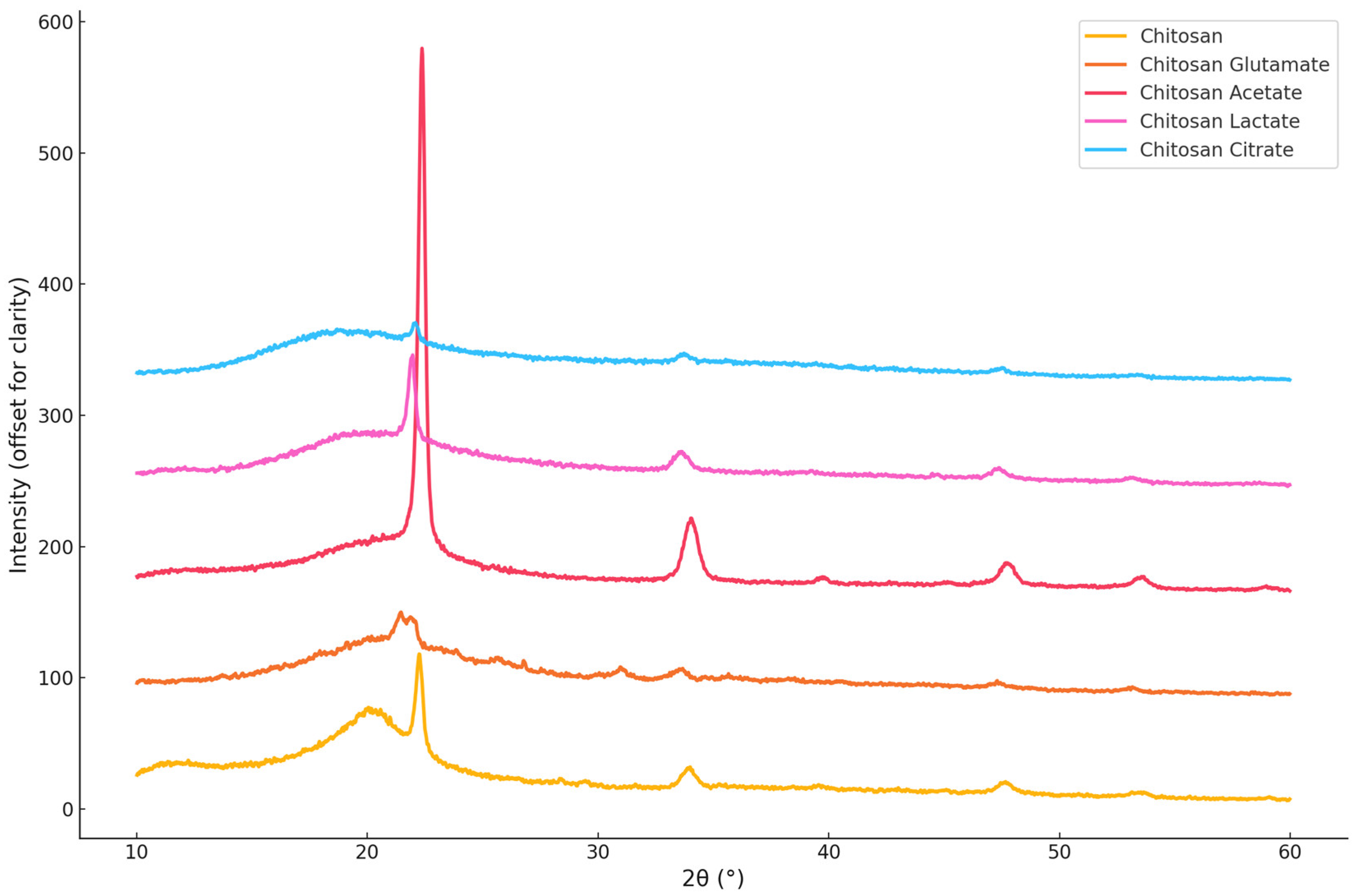 4.3. Characterization of Chitosan Salts