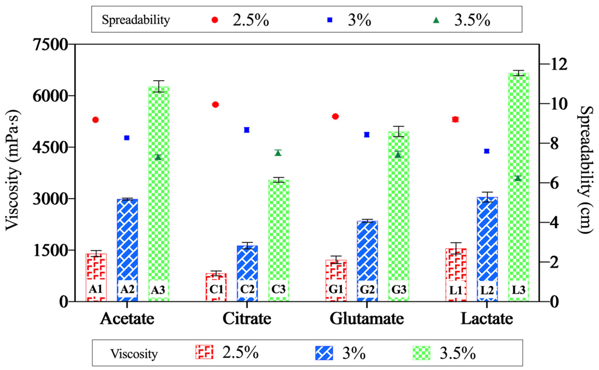 2.4. Rheological Properties and Spreadability