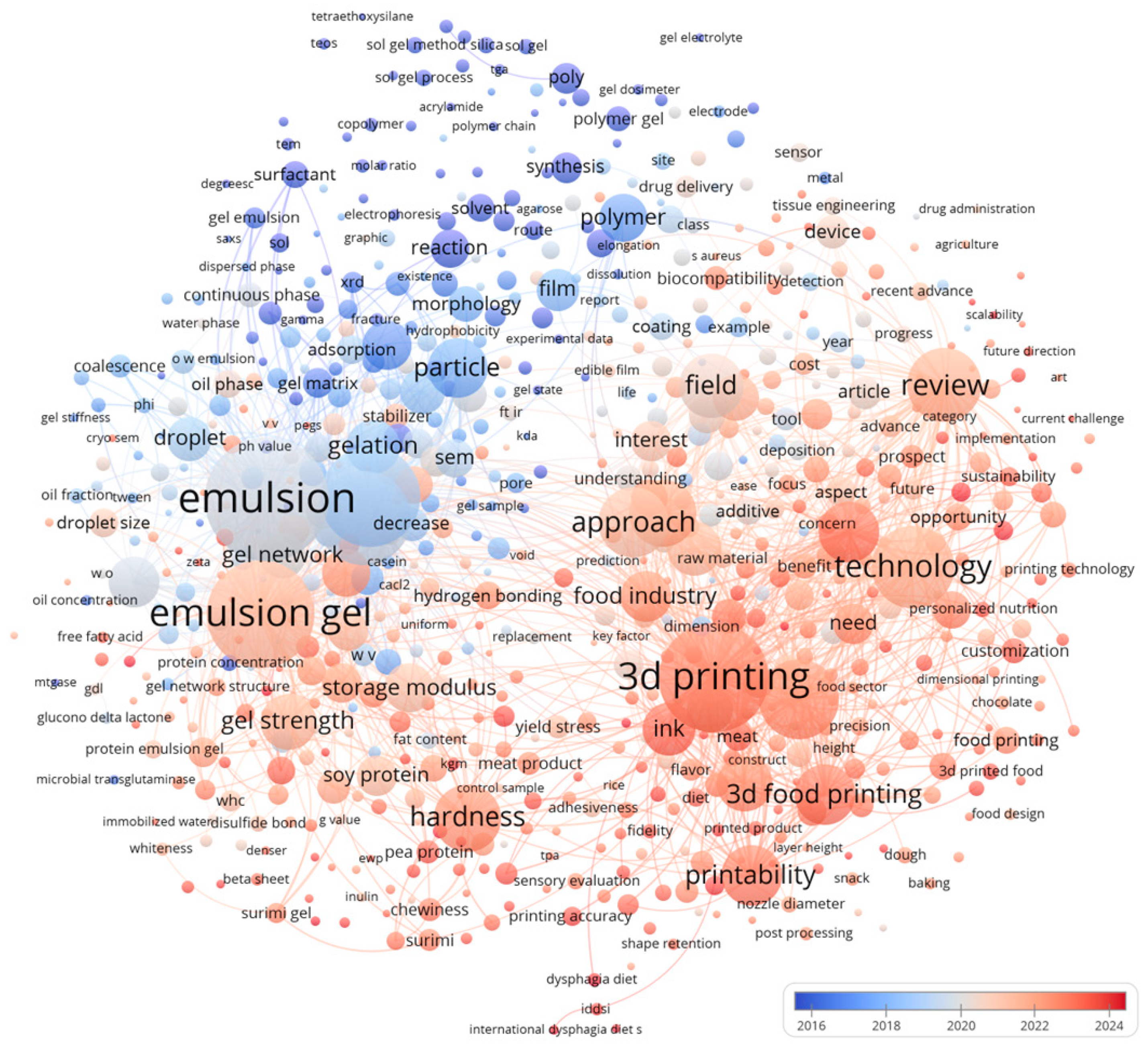 - Yu, J.; Li, D.; Wang, L.-J.; Wang, Y. Improving Freeze-Thaw Stability and 3D Printing Performance of Soy Protein Isolate Emulsion Gel Inks by Guar & Xanthan Gums. Food Hydrocoll. 2023, 136, 108293. [Google Scholar] [CrossRef]