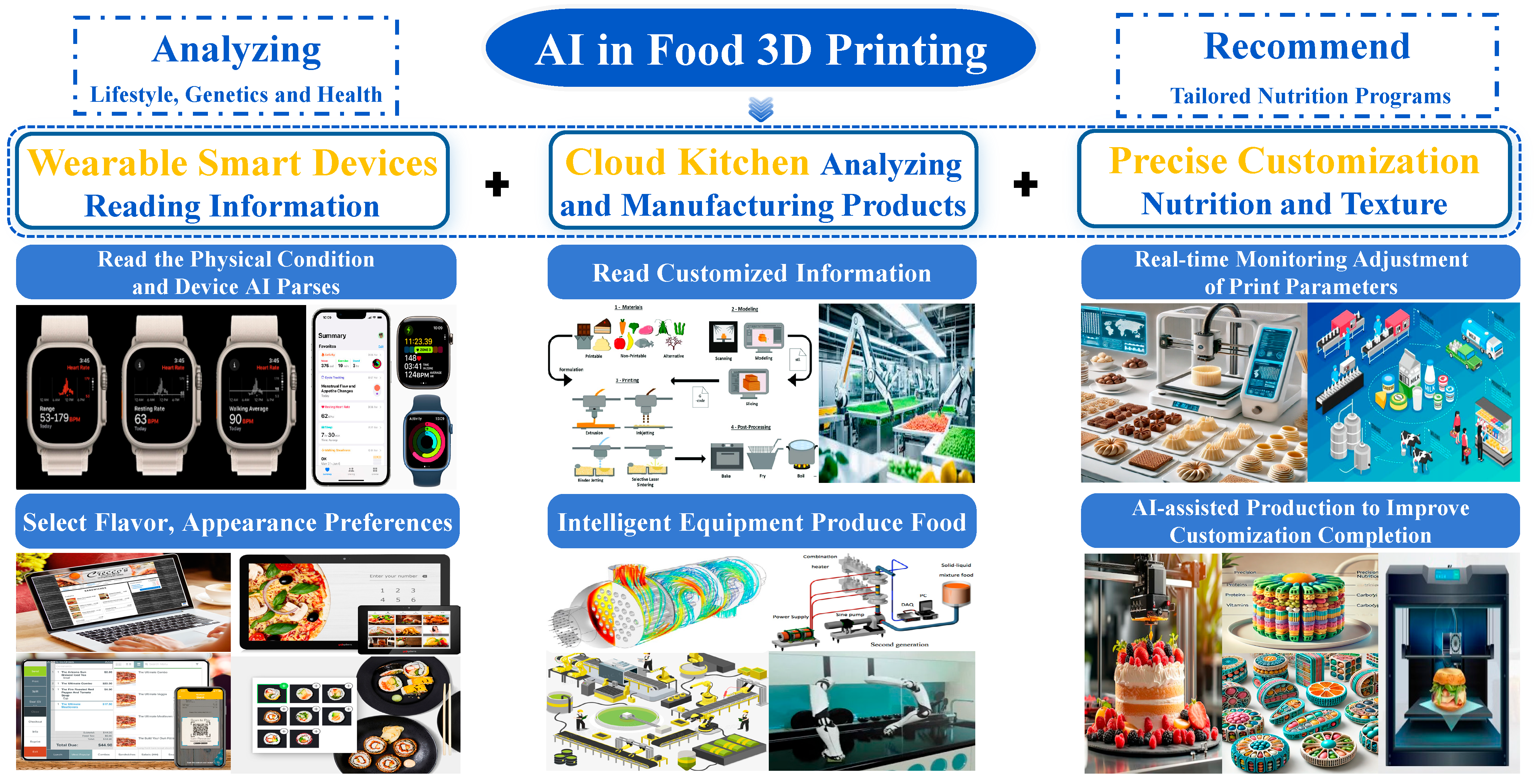 - Derossi, A.; Spence, C.; Corradini, M.G.; Jekle, M.; Fahmy, A.R.; Caporizzi, R.; Devahastin, S.; Moses, J.A.; Le-Bail, A.; Zhou, W.; et al. Personalized, Digitally Designed 3D Printed Food Towards the Reshaping of Food Manufacturing and Consumption. npj Sci. Food 2024, 8, 54. [Google Scholar] [CrossRef] [PubMed]