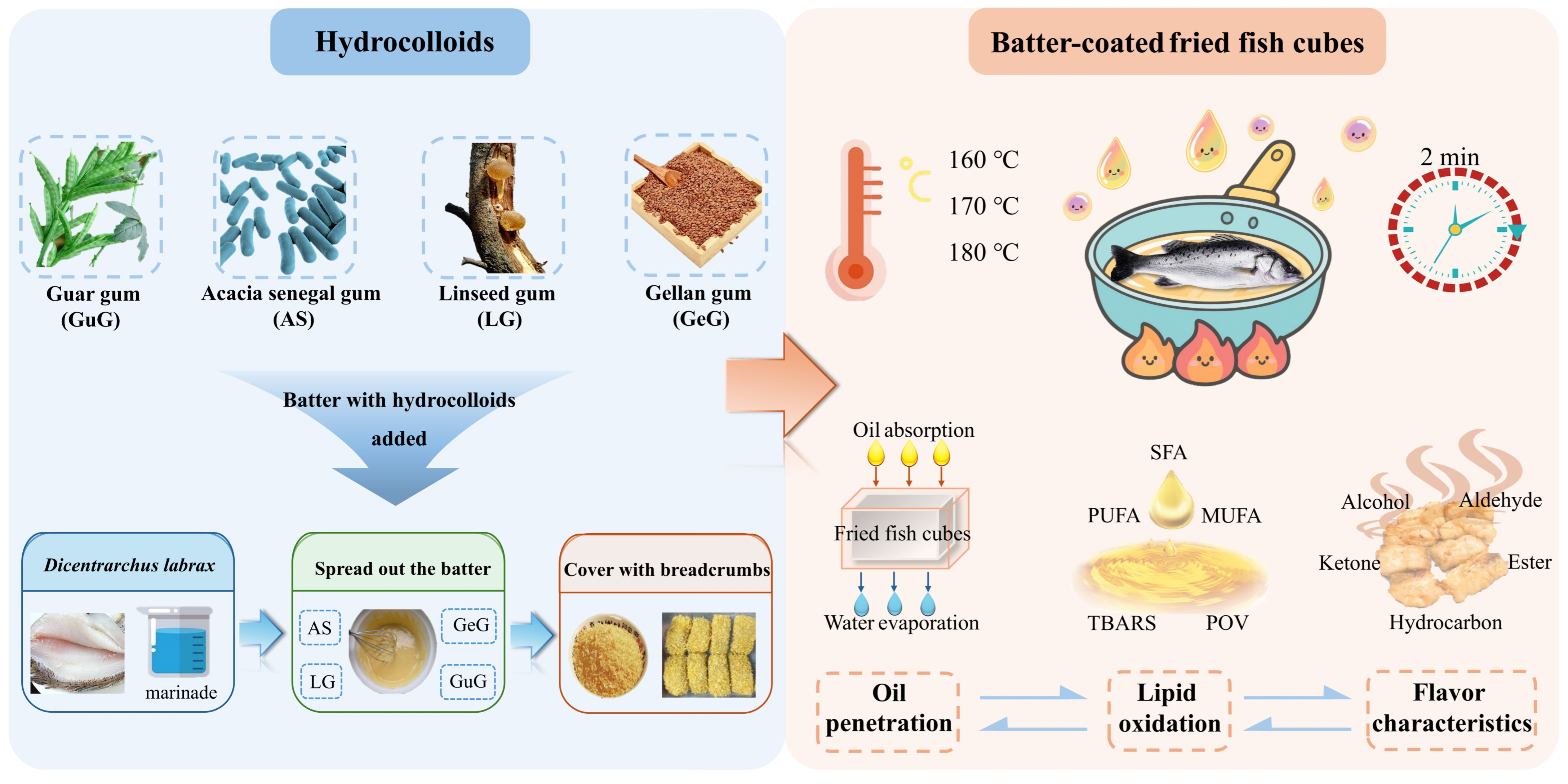 Regulation of Oil Penetration, Lipid Oxidation, and Flavor Characteristics in Batter-Coated Fried Fish Cubes: The Functional Implications of Hydrocolloids