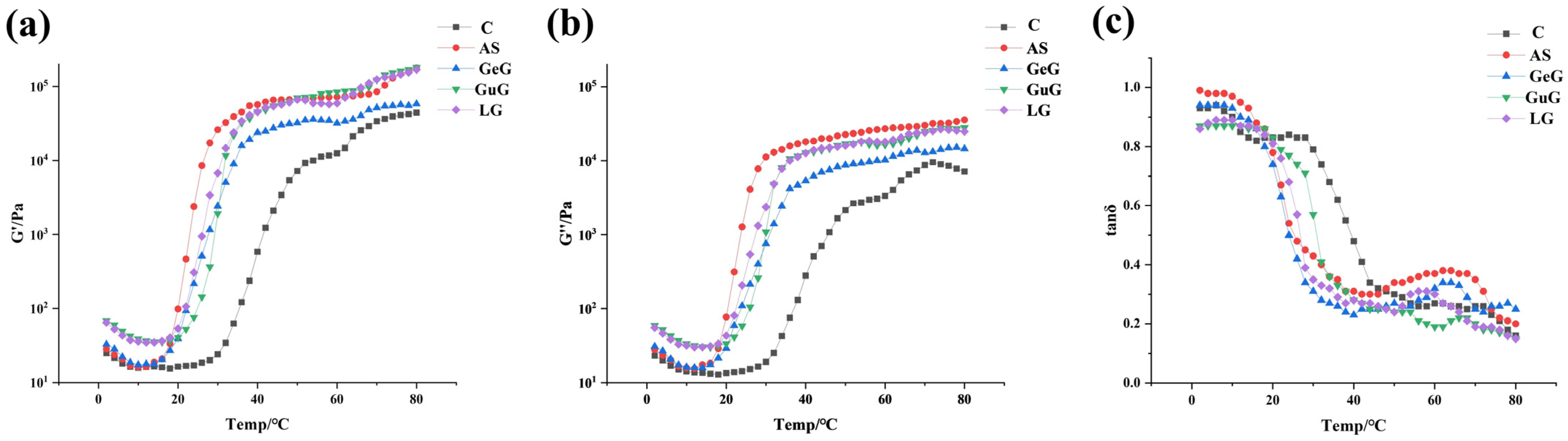 2.1. Effects of Different Hydrocolloids on the Rheological Properties of Batter