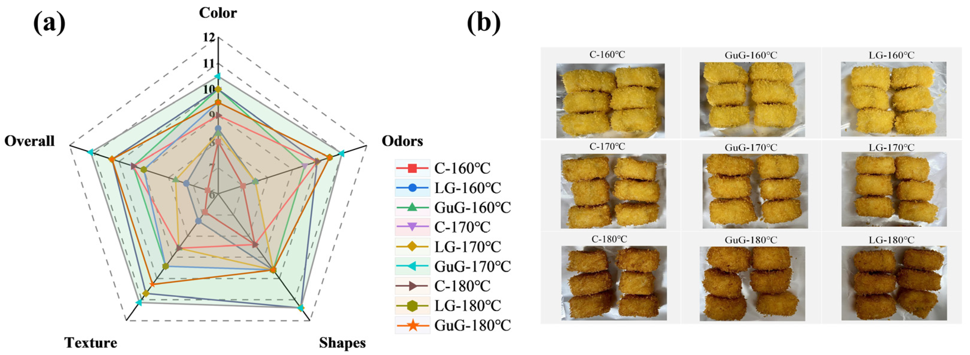 - Wang, X.; McClements, D.J.; Xu, Z.; Meng, M.; Qiu, C.; Long, J.; Jin, Z.; Chen, L. Recent Advances in the Optimization of the Sensory Attributes of Fried Foods: Appearance, Flavor, and Texture. Trends Food Sci. Technol. 2023, 138, 297–309. [Google Scholar] [CrossRef]