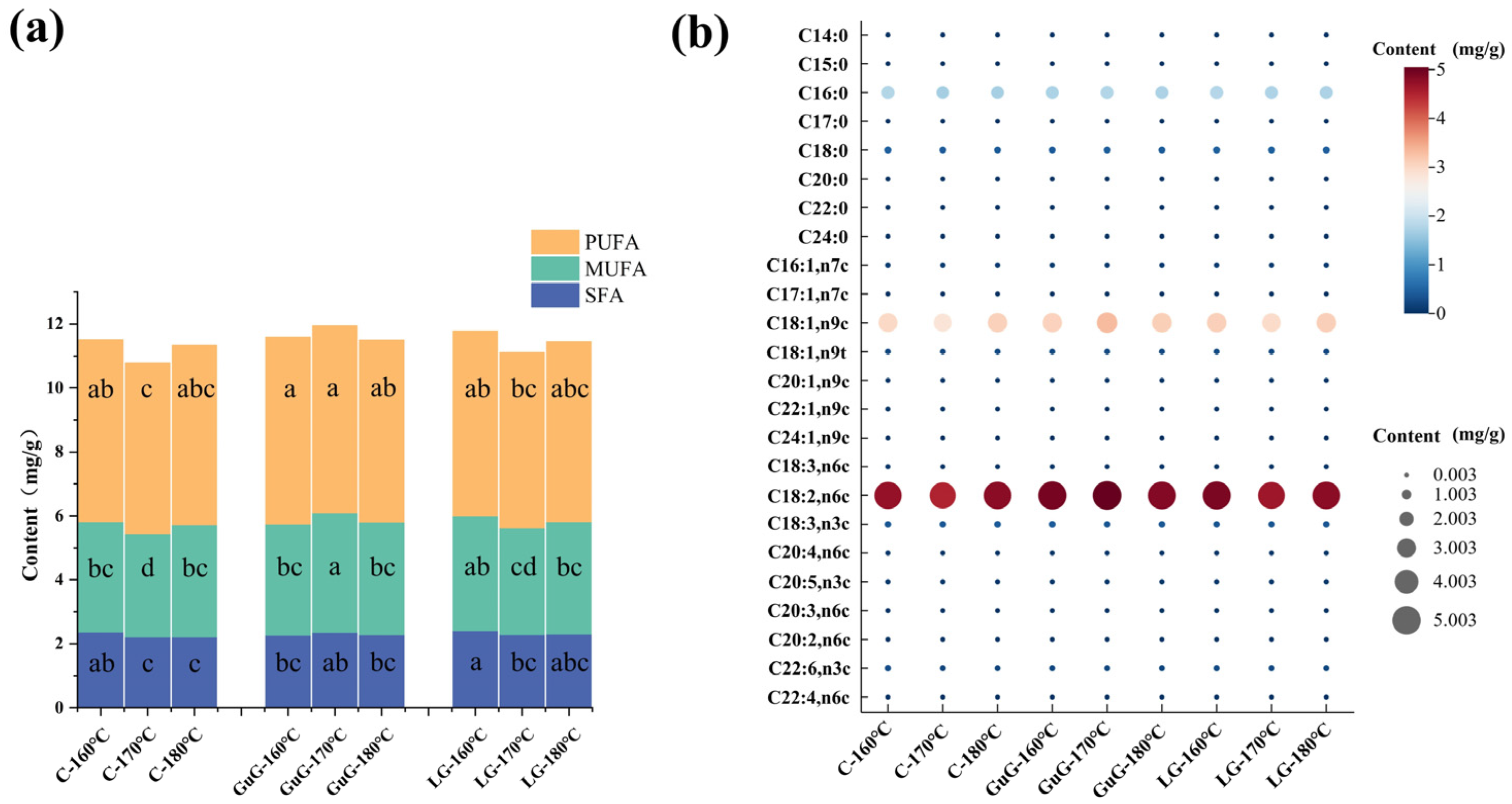 2.7. Effects of Different Heat Treatments on FFA in Fried Fish Cubes