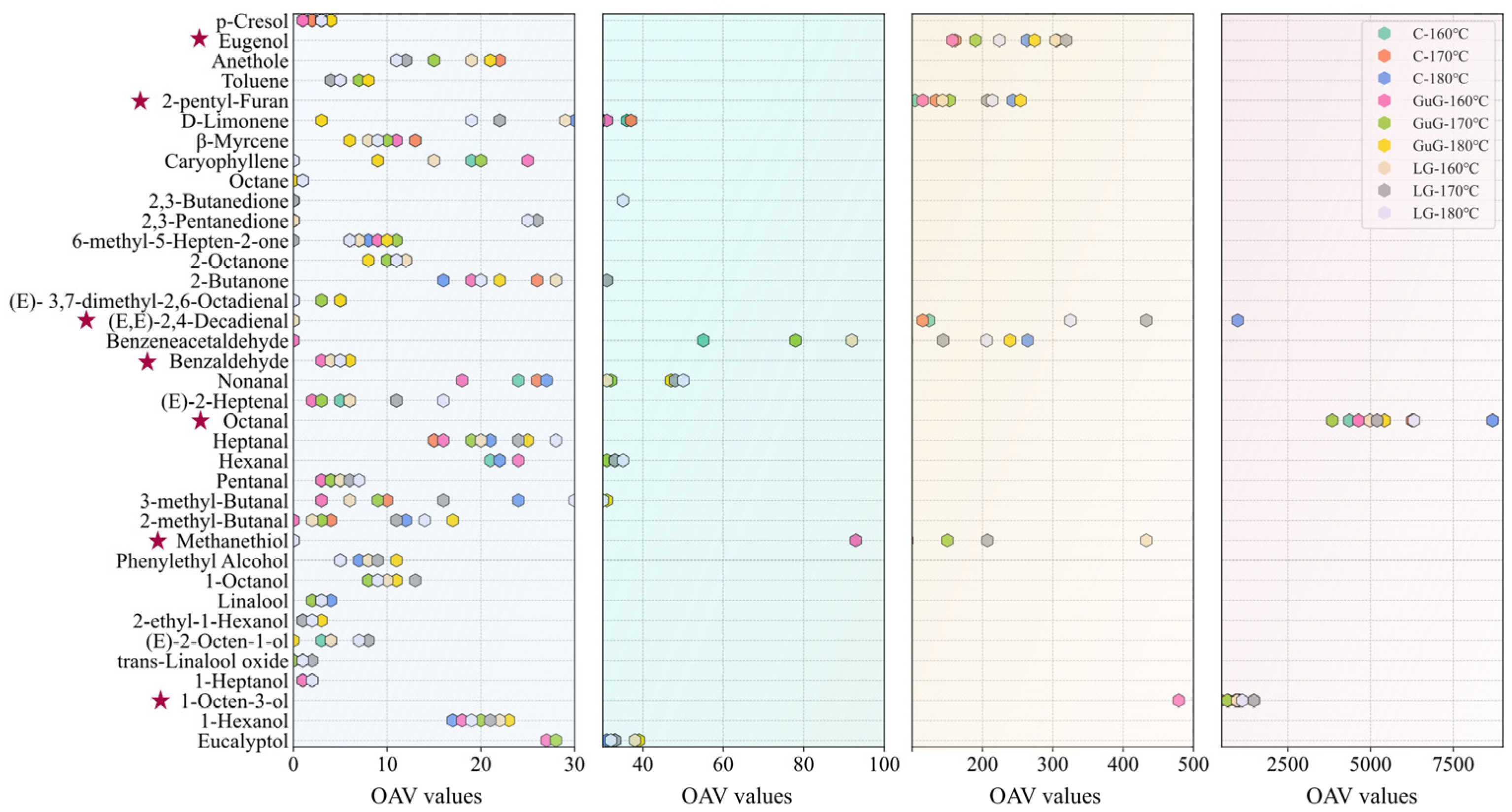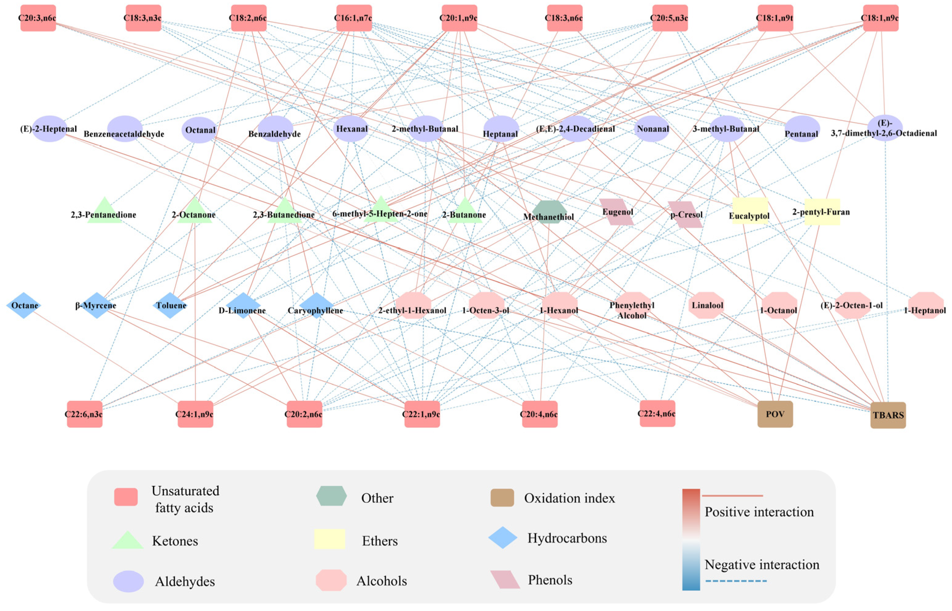 2.9. Correlation Analysis Between Characteristic Flavor Compounds and Lipid Oxidation