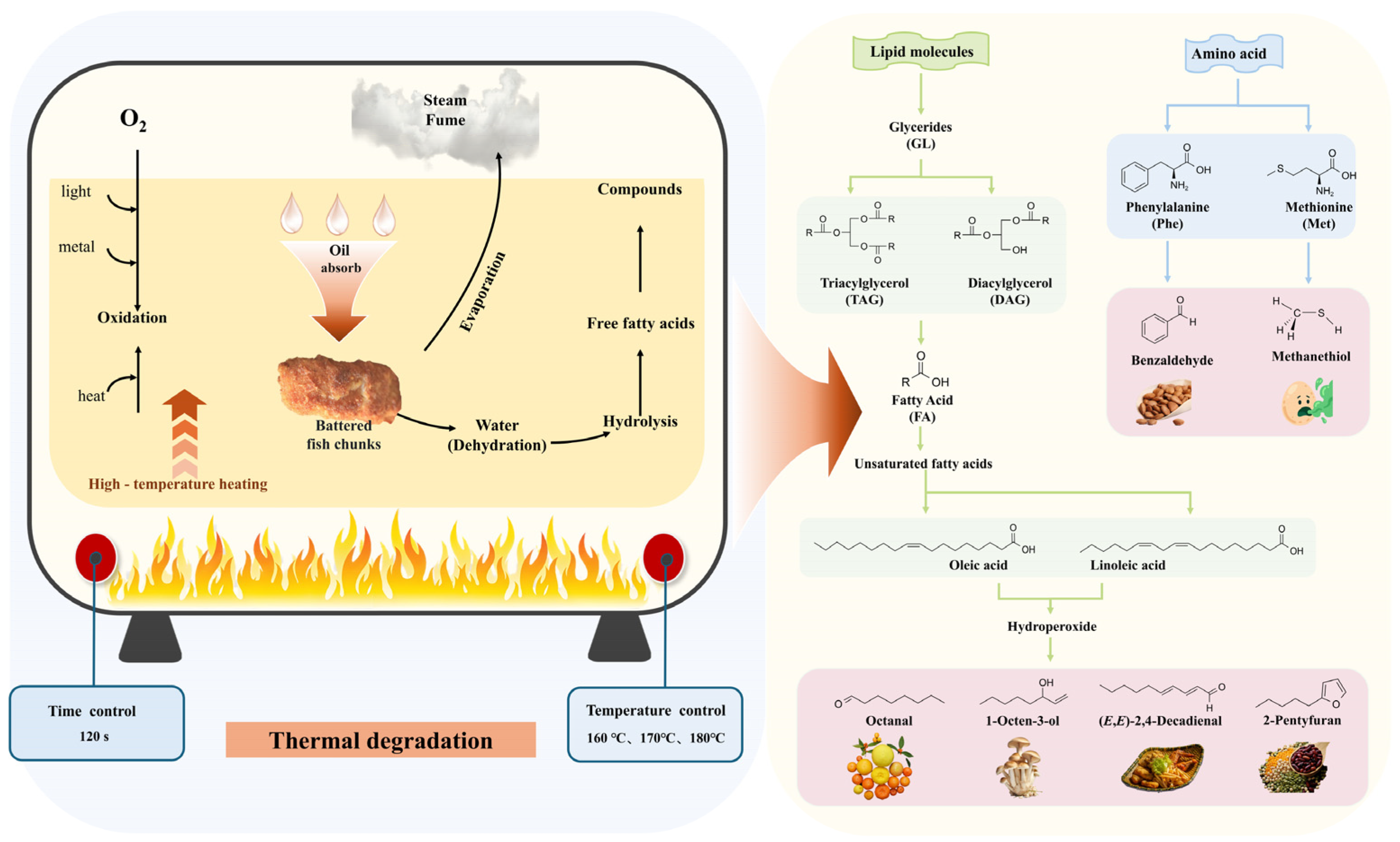 - Wu, R.; Jiang, Y.; Qin, R.; Shi, H.; Jia, C.; Rong, J.; Liu, R. Study of the Formation of Food Hazard Factors in Fried Fish Nuggets. Food Chem. 2022, 373, 131562. [Google Scholar] [CrossRef]