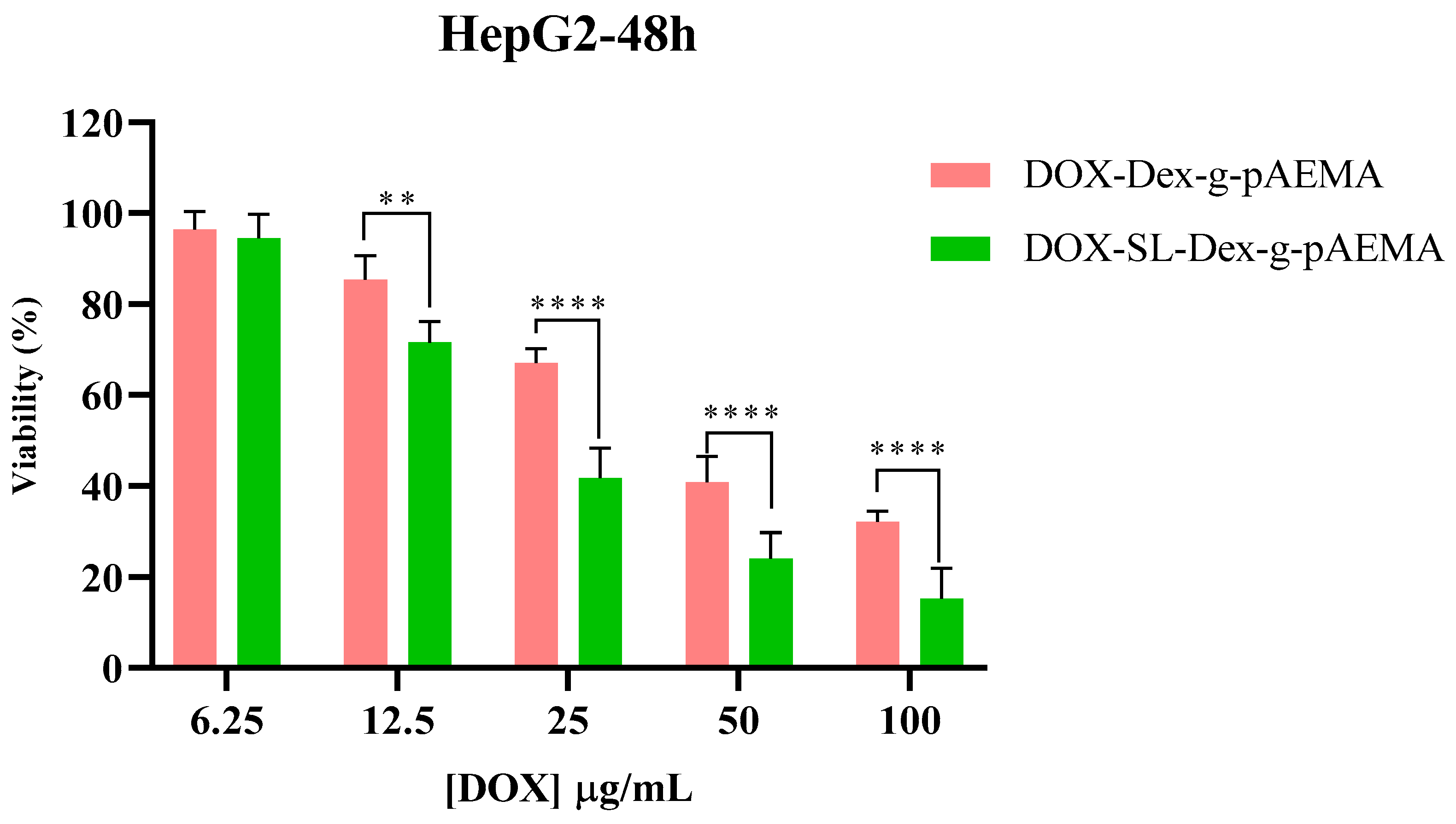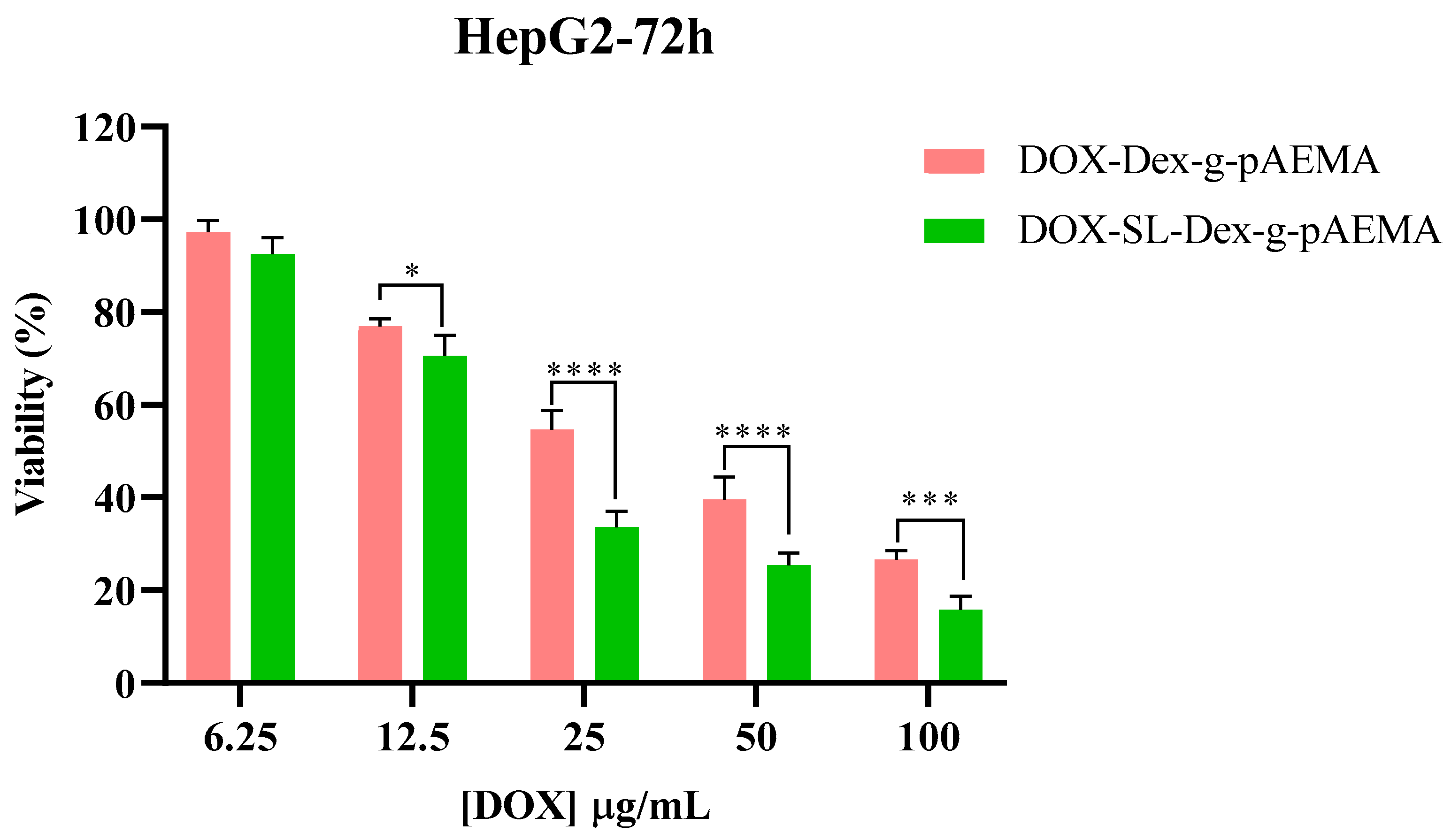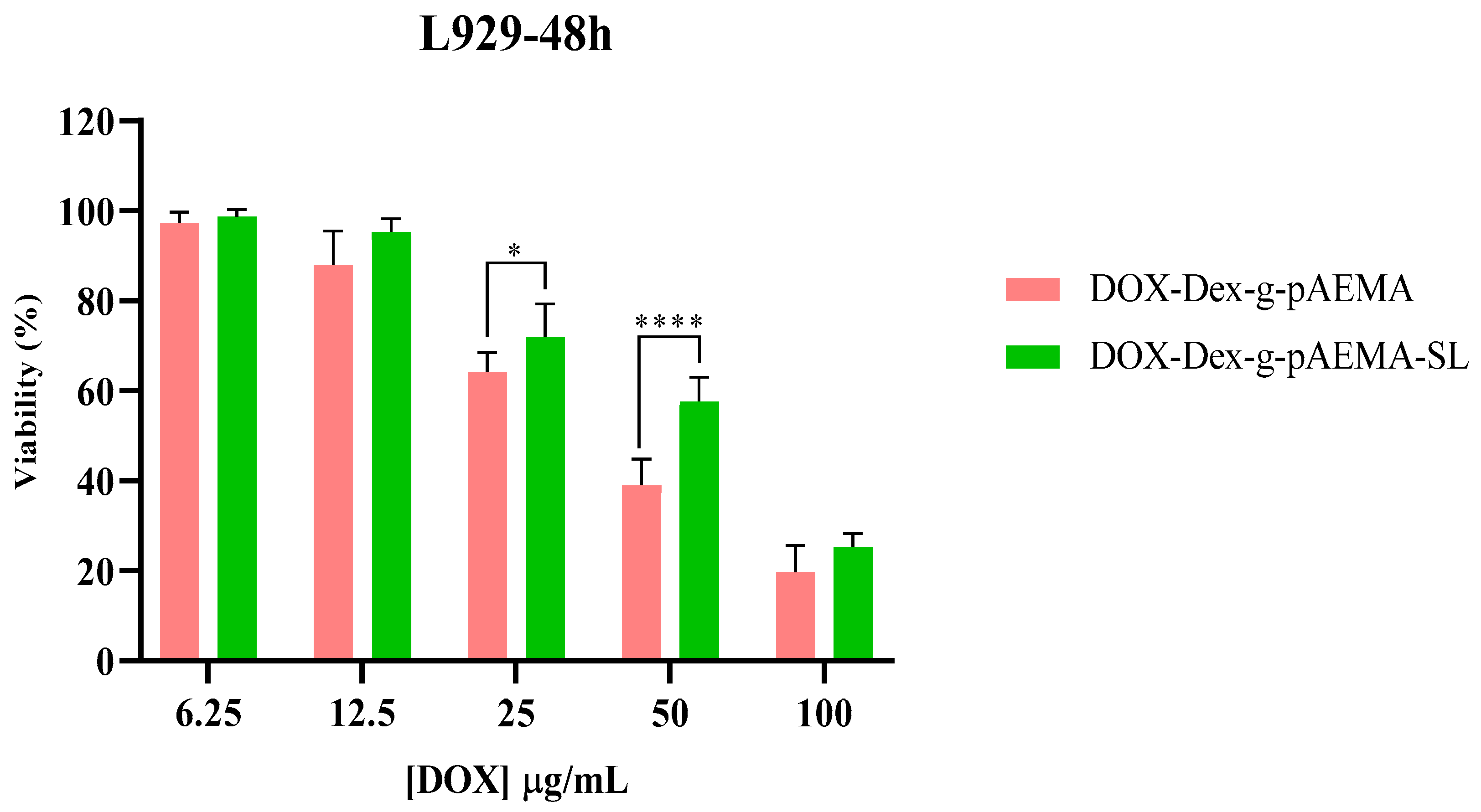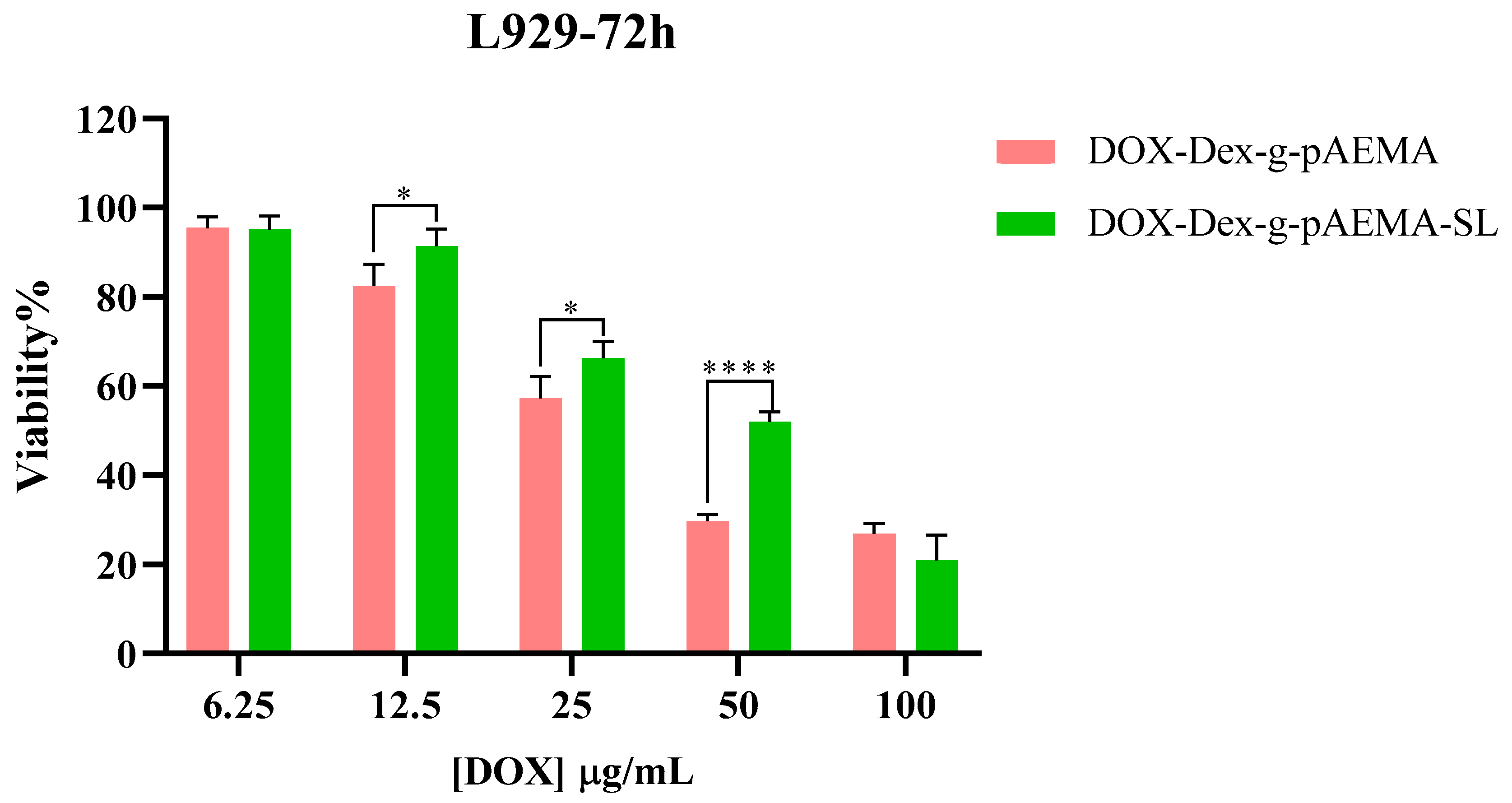 DOX-SL-Dex-g-pAEMA | 26.67 ± 1.65 | 22.65 ± 2.56 | 63.91 ± 3.36 | 59.71 ± 3.07 |