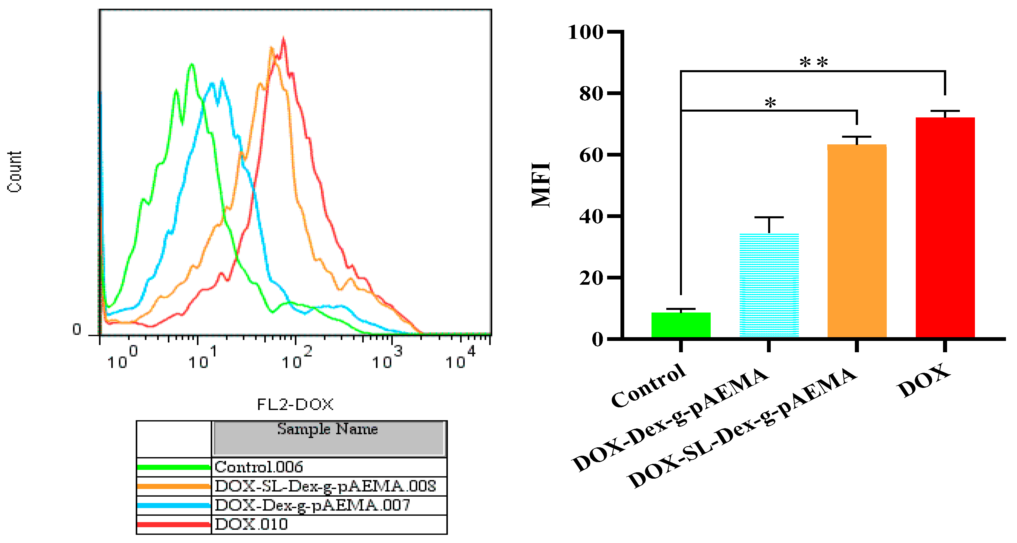 4.2.4. Conjugation of DOX (DOX-SL-Dex-g-pAEMA)