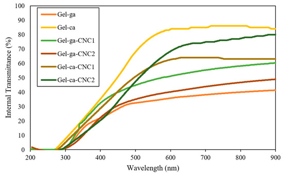 UV–Vis direct transmittance spectra of the different treatments.