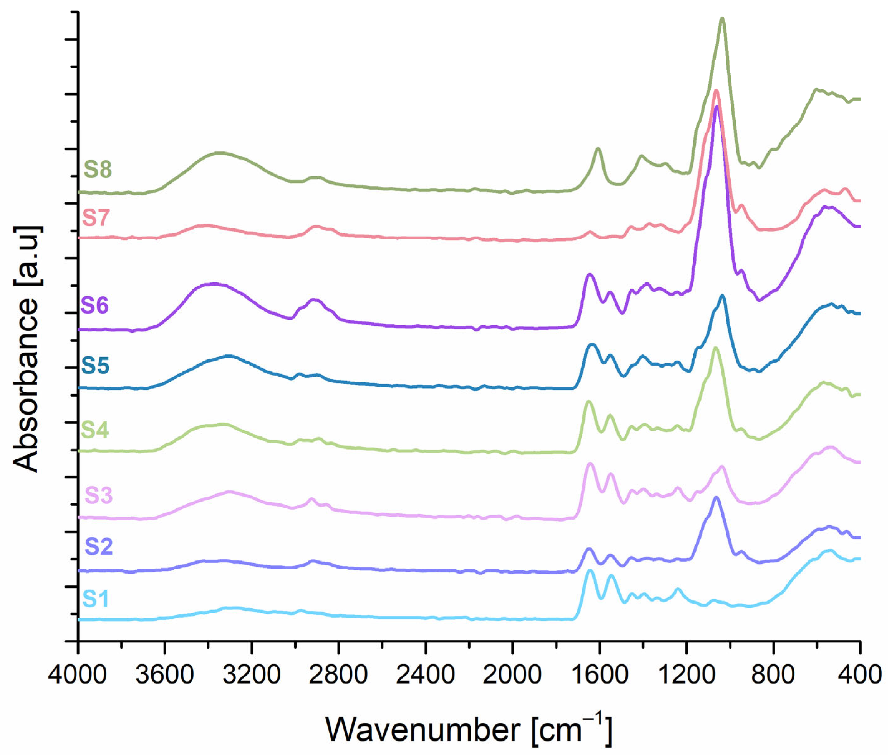 4.2.5. Fourier Transform Infrared (FT-IR) Spectroscopy