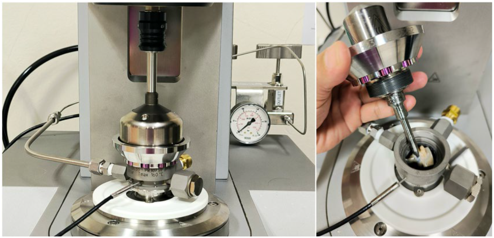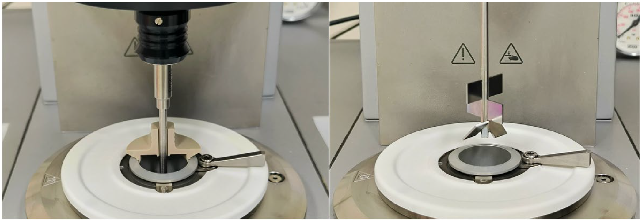 Figure 8. Anton Paar C-ETD 160/ST starch cell operated in pressureless mode for RVA-like pasting analysis (Section 4.6.2). The open system permits conventional heating–cooling cycles under atmospheric pressure, allowing comparison with standard starch pasting profiles.
