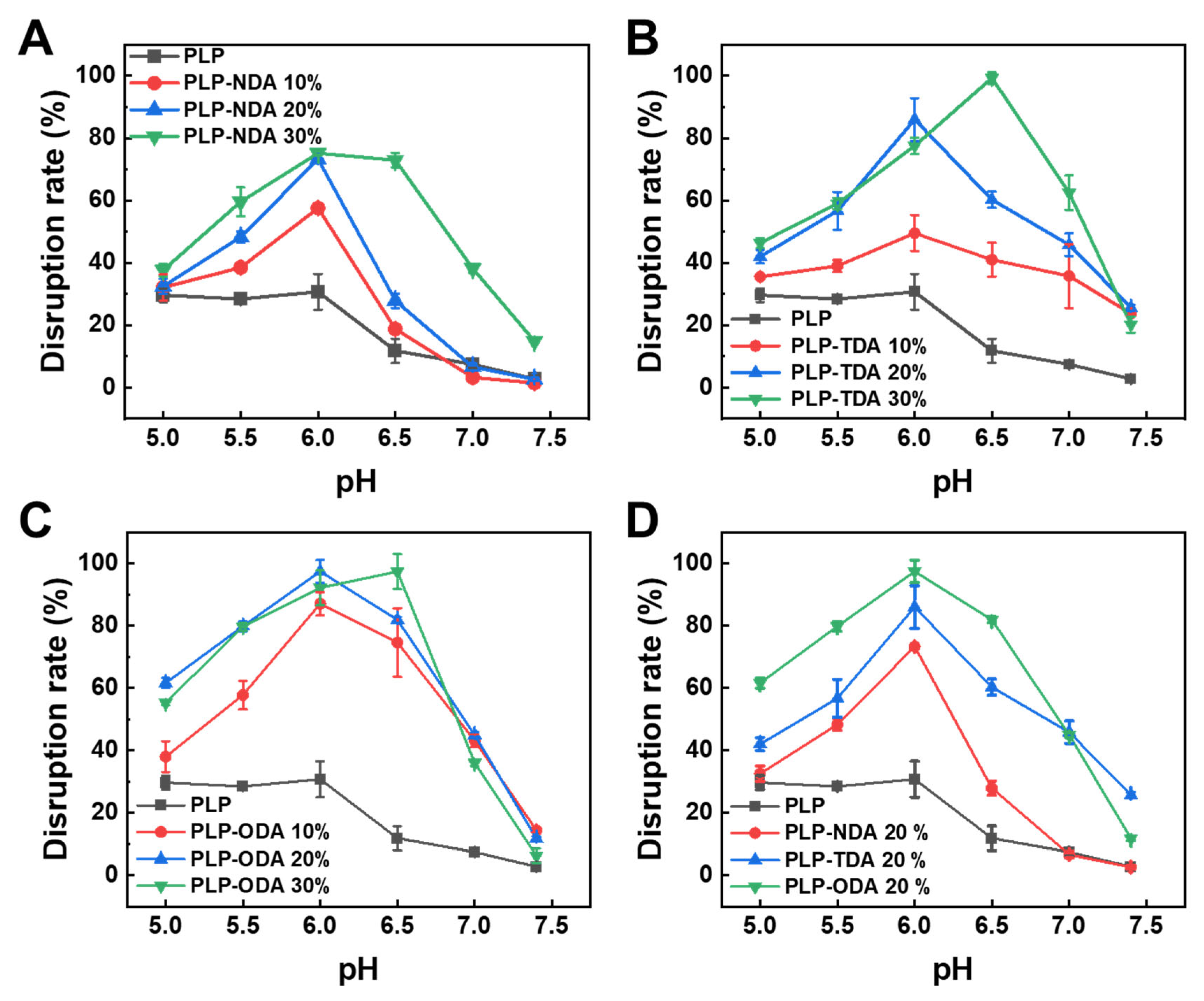 - Fernando, L.P.; Lewis, J.S.; Evans, B.C.; Duvall, C.L.; Keselowsky, B.G. Formulation and Characterization of Poly(Propylacrylic Acid)/Poly(Lactic-Co-Glycolic Acid) Blend Microparticles for pH-Dependent Membrane Disruption and Cytosolic Delivery. J. Biomed. Mater. Res. A 2018, 106, 1022–1033. [Google Scholar] [CrossRef]
