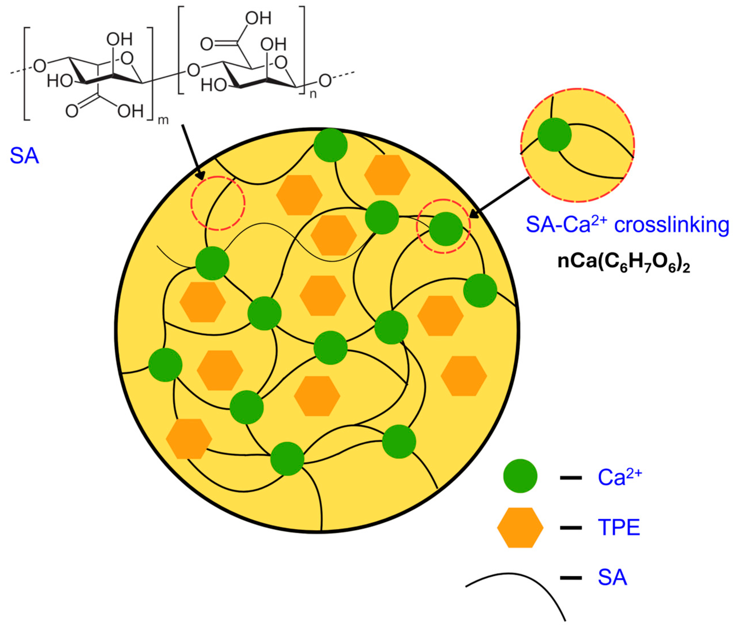 4.3. Preparation of TPEen-SA-Based Gel Beads