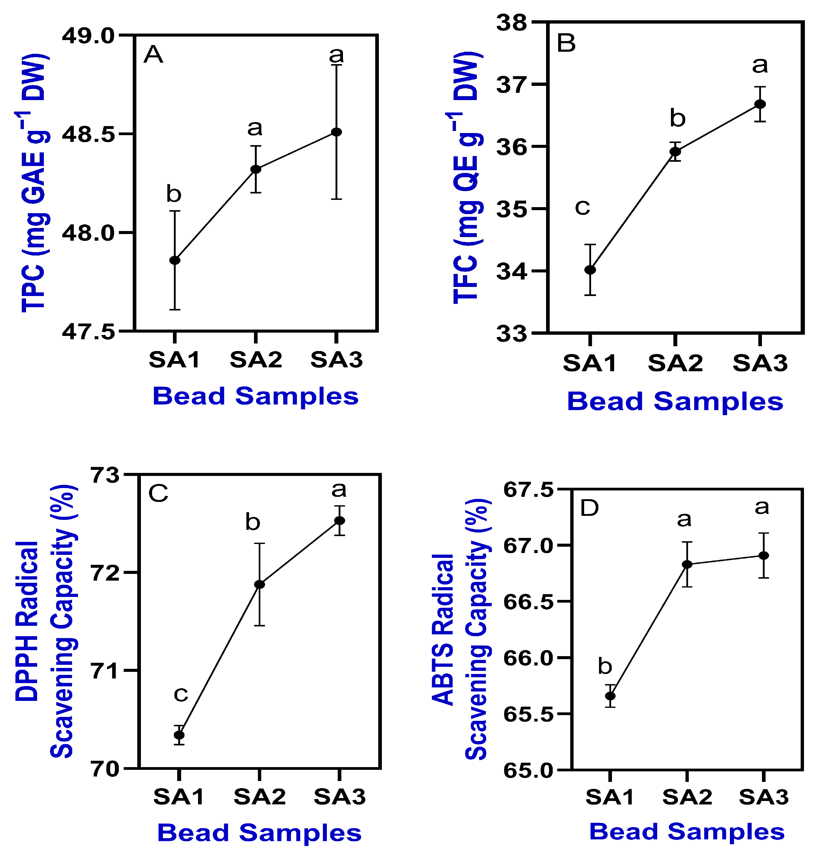 - Aguirre-Calvo, T.R.; Sosa, N.; López, T.A.; Quintanilla-Carvajal, M.X.; Perullini, M.; Santagapita, P.R. Bioaccessibility assay, antioxidant activity and consumer-oriented sensory analysis of Beta vulgaris by-product encapsulated in Ca (II)-alginate beads for different foods. Food Chem. Mol. Sci. 2022, 5, 100140. [Google Scholar] [CrossRef]