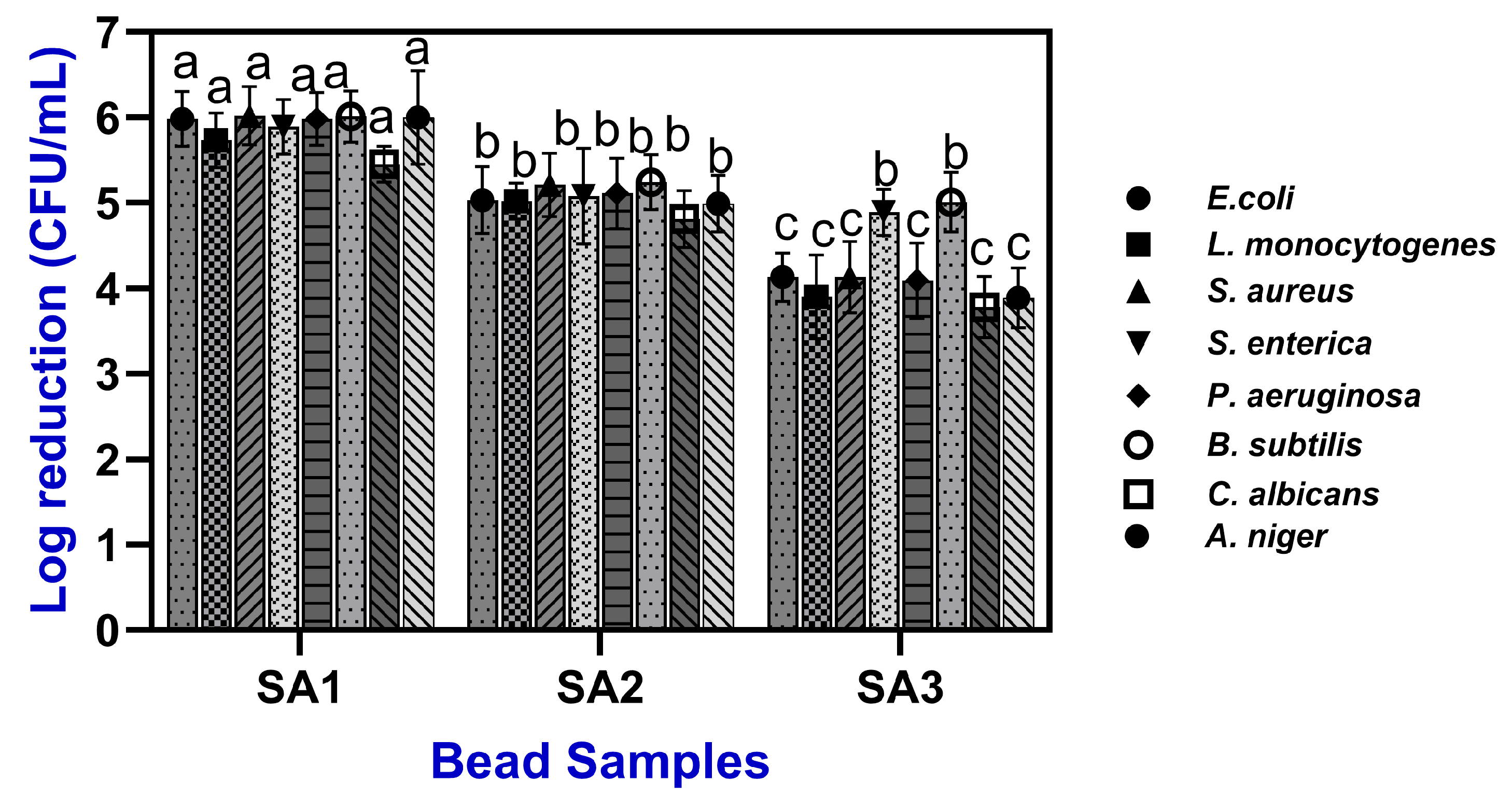 - Mostaghimi, M.; Majdinasab, M.; Golmakani, M.T.; Hadian, M.; Hosseini, S.M.H. Development and characterization of antimicrobial alginate hydrogel beads filled with cinnamon essential oil nanoemulsion. J. Biomater. Sci. Polym. Ed. 2023, 34, 2144–2160. [Google Scholar] [CrossRef]