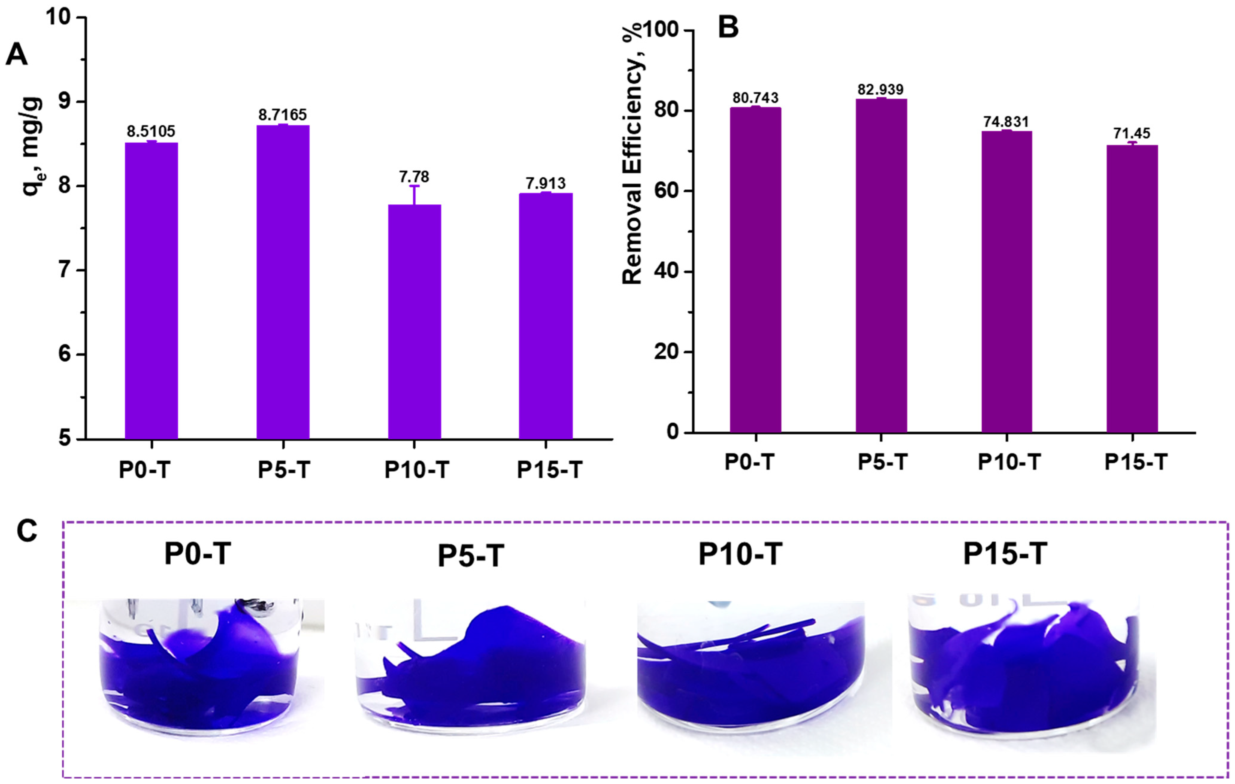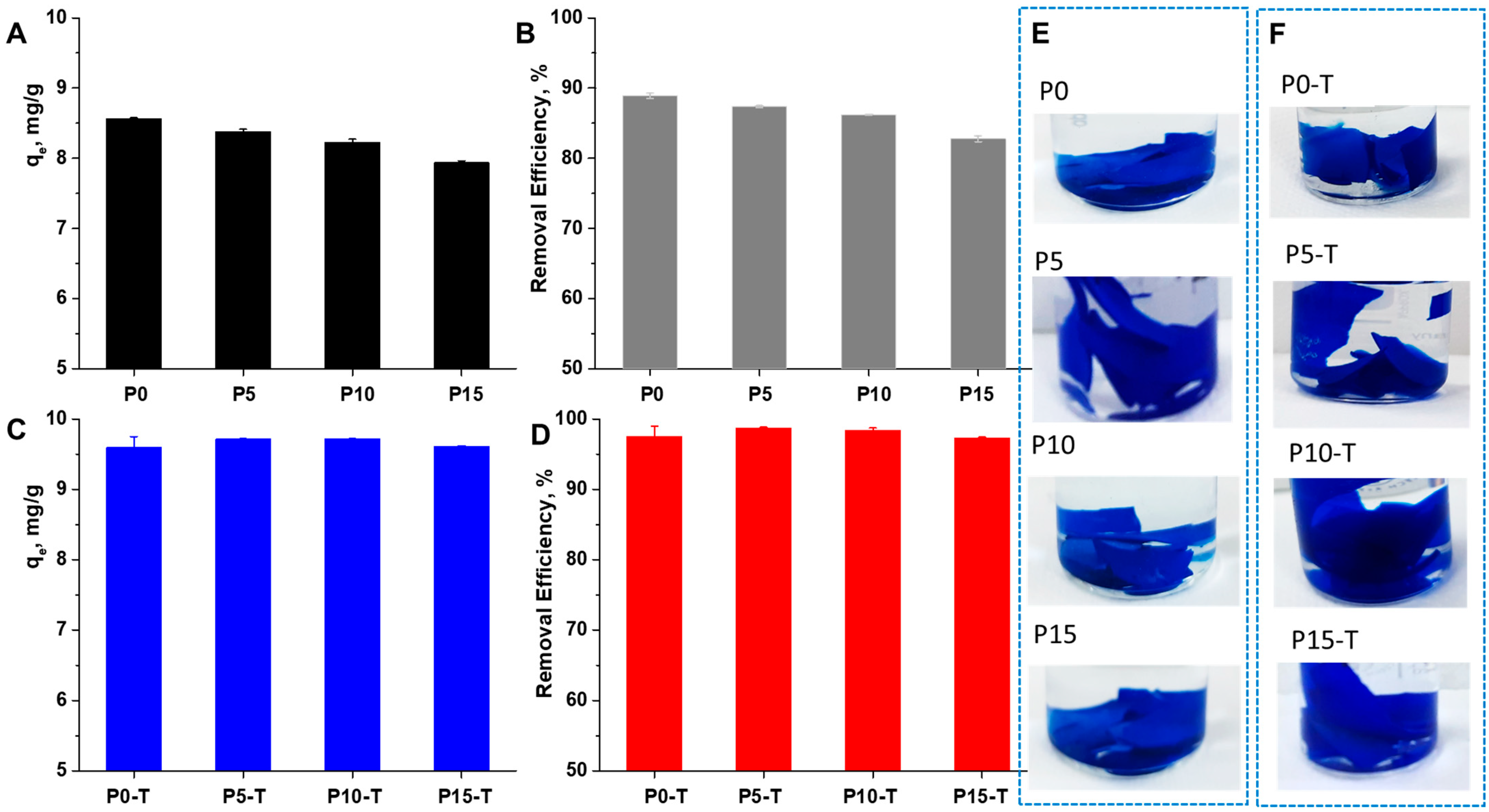 2.5. Sorption of Synthetic Dyes