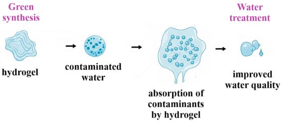 Overall, the synthesis of these hydrogels integrates material selection, crosslinking technology, and functionalization to create efficient, eco-friendly platforms for water treatment applications [16,21,22,26,28]. The design and synthesis of sustainable hydrogels are critical for their effective and environmentally responsible application in water treatment. This section explores the choice of raw materials, green synthesis routes, and functionalization strategies that enhance their performance and align with sustainability principles.