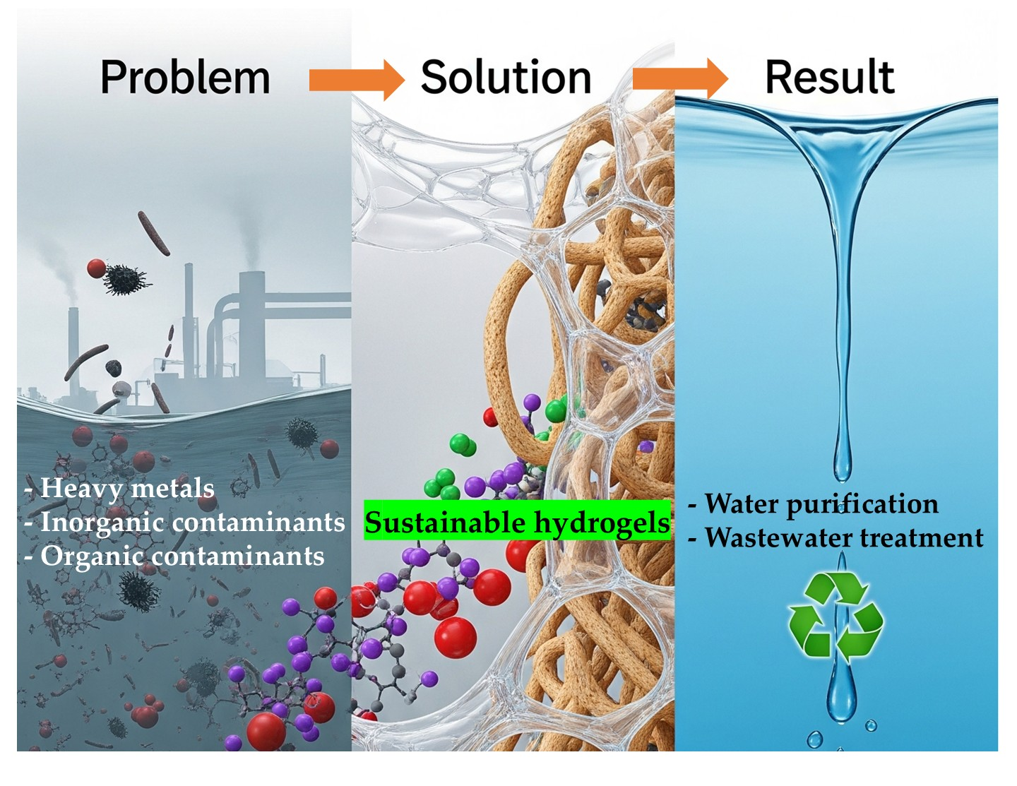 - Pattnaik, A.; Ghosh, P.; Poonia, A.K. An Overview on Advancements in Hydrogels for Effective Wastewater Treatment. J. Mol. Liq. 2025, 424, 127120. [Google Scholar] [CrossRef]