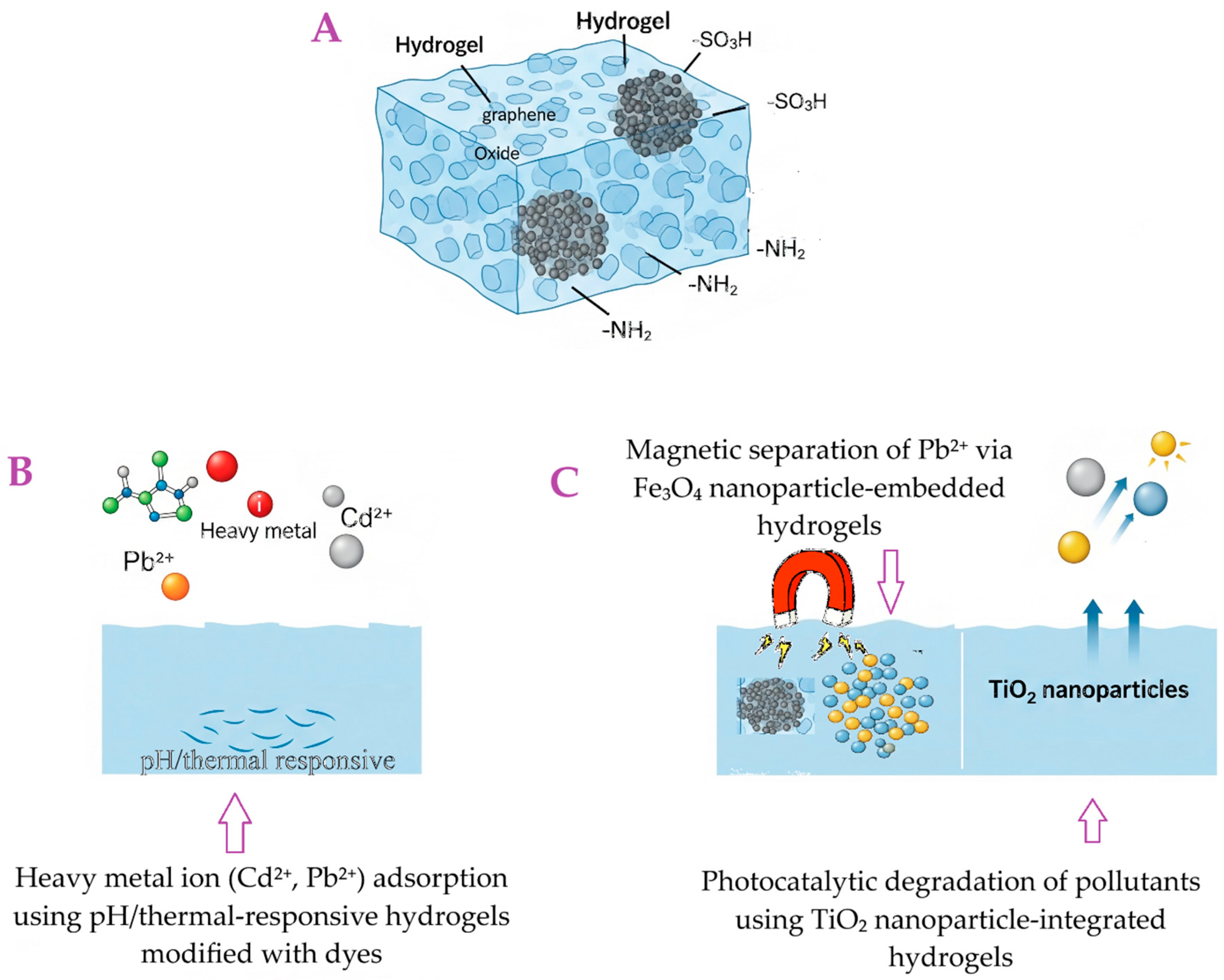 - Visan, A.I.; Negut, I. Environmental and Wastewater Treatment Applications of Stimulus-Responsive Hydrogels. Gels 2025, 11, 72. [Google Scholar] [CrossRef]