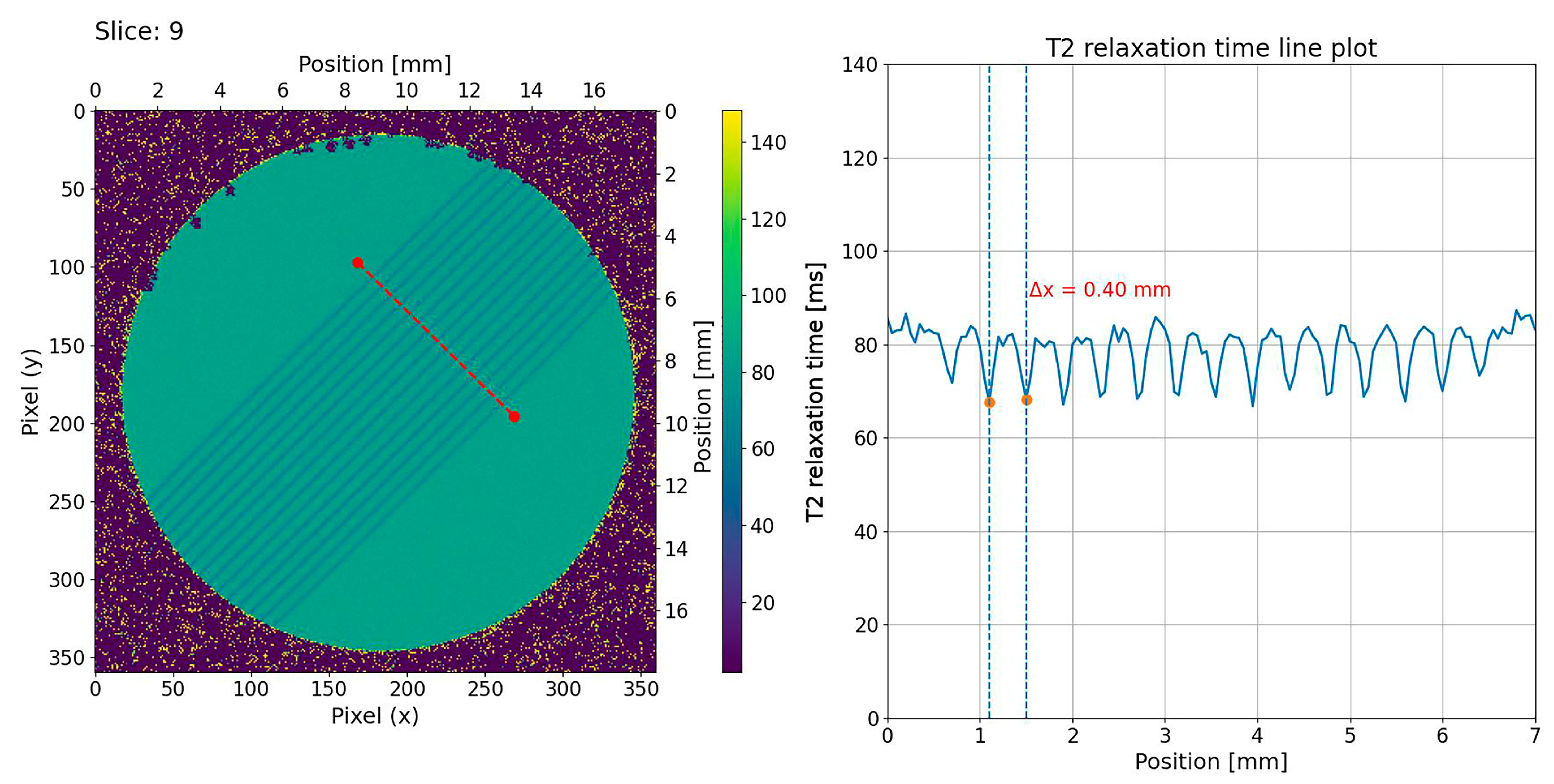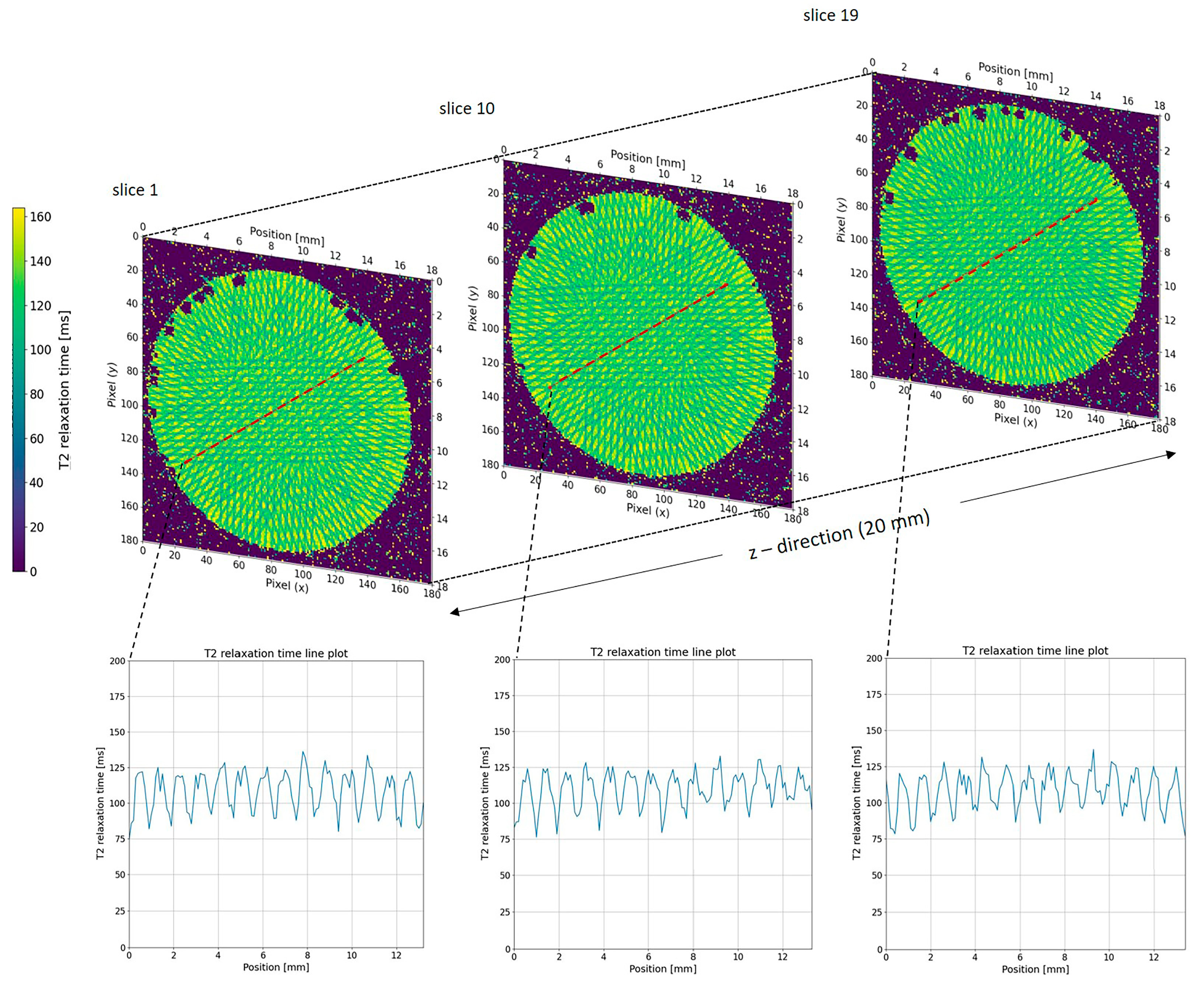 T2-Map-MSME frontal | 3375.8 ms | 12 Echos, spacing 15 ms (15–180 ms) | 40 × 20 mm | 180 × 180 | 100 × 100 µm | 17/1 mm | 31:37 min:s (4 Averages) |
