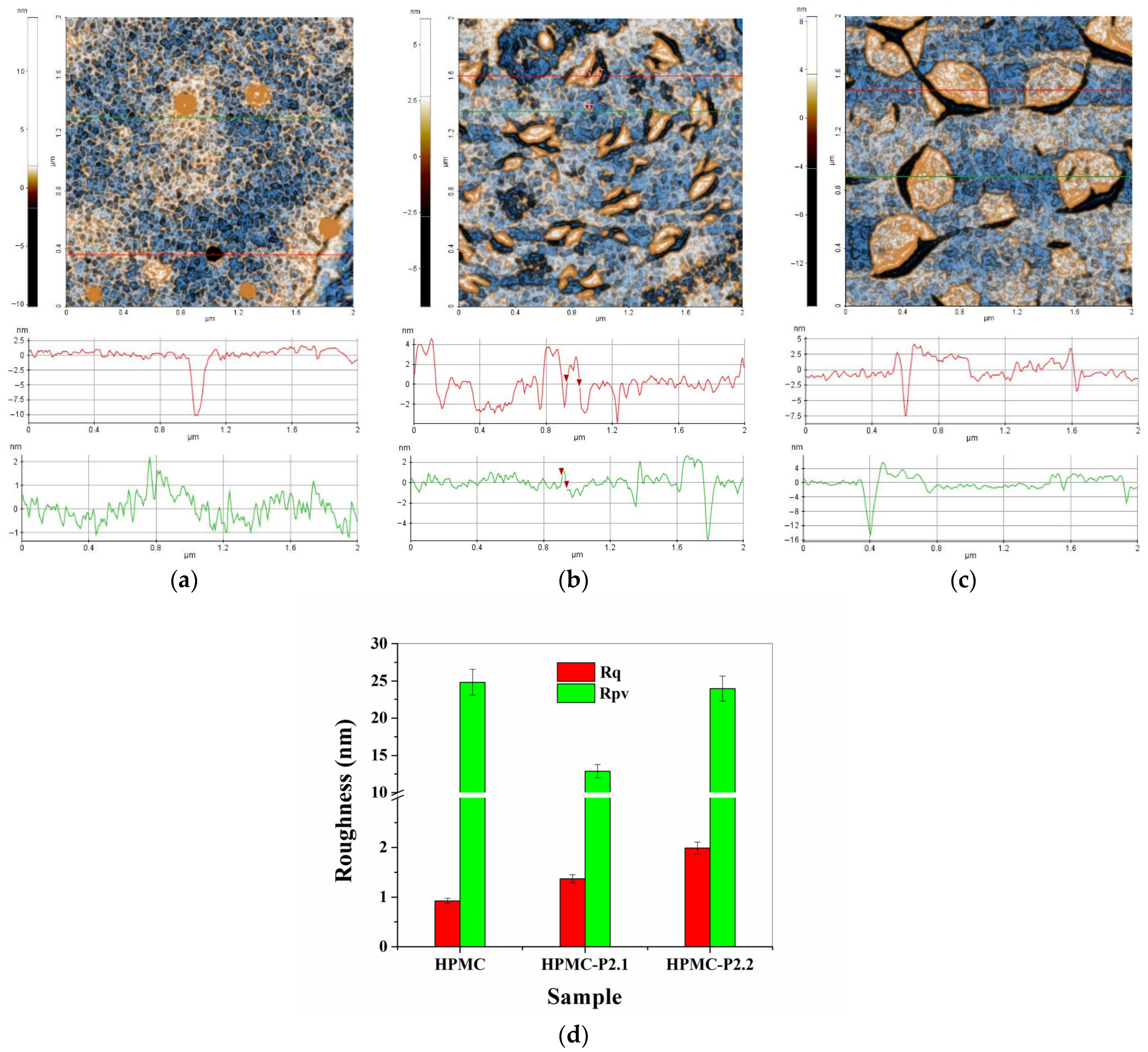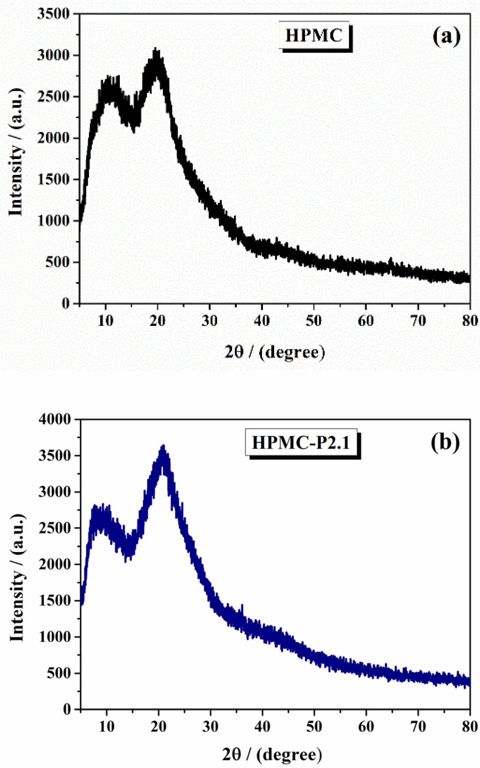 | HPMC-P2.1 | Below 100 °C/2.2% | TDTA = 342.16 °C and TDTG = 345 °C TDTA = 453.8 °C and TDTG = 453.5 °C | No residue |
