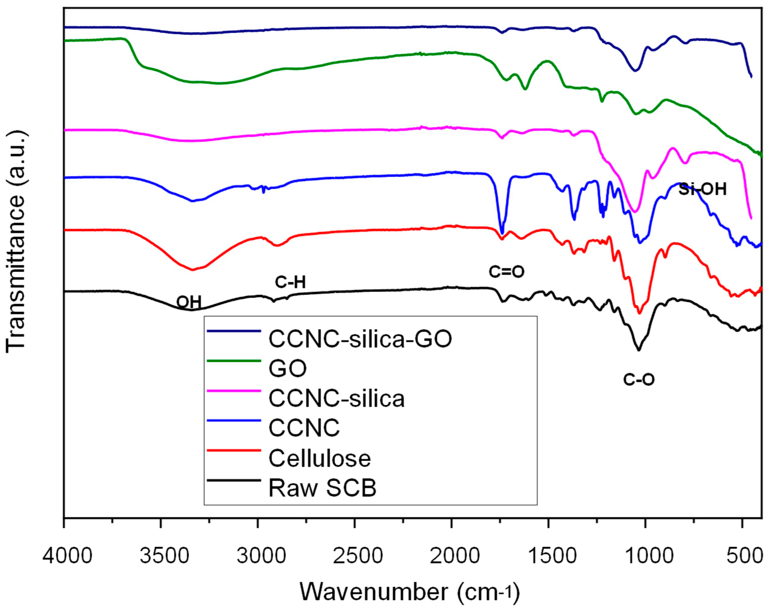 4.6. Preparation of CCNC–Silica–GO Hybrid Composite Porous Monolith