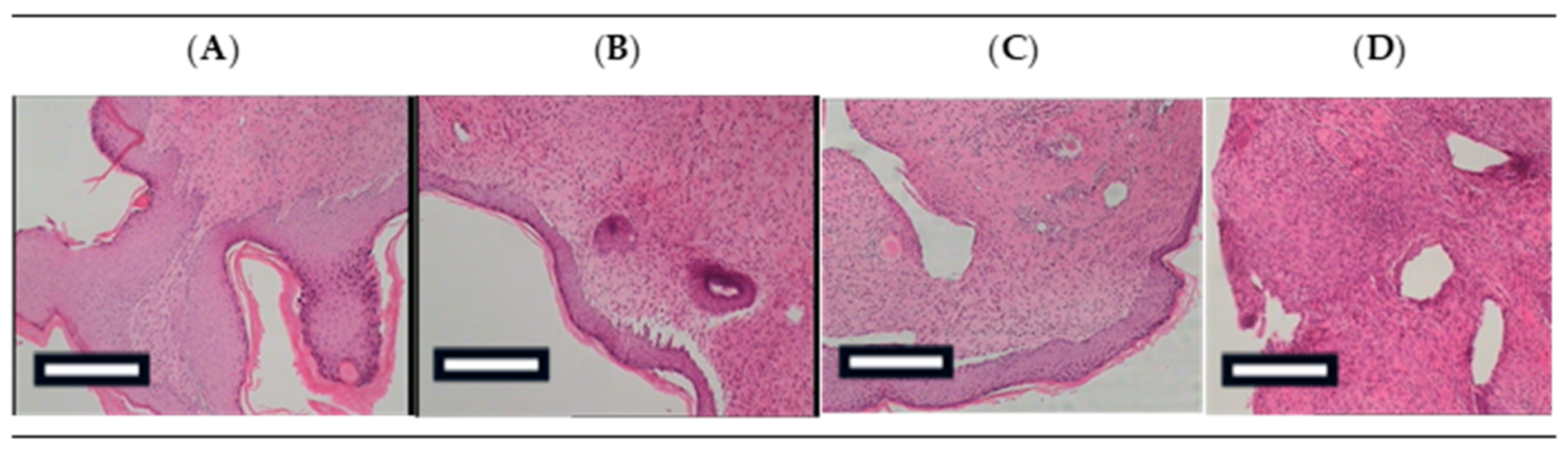 4.4.1. Macroscopic Evaluation and Wound Area Analysis