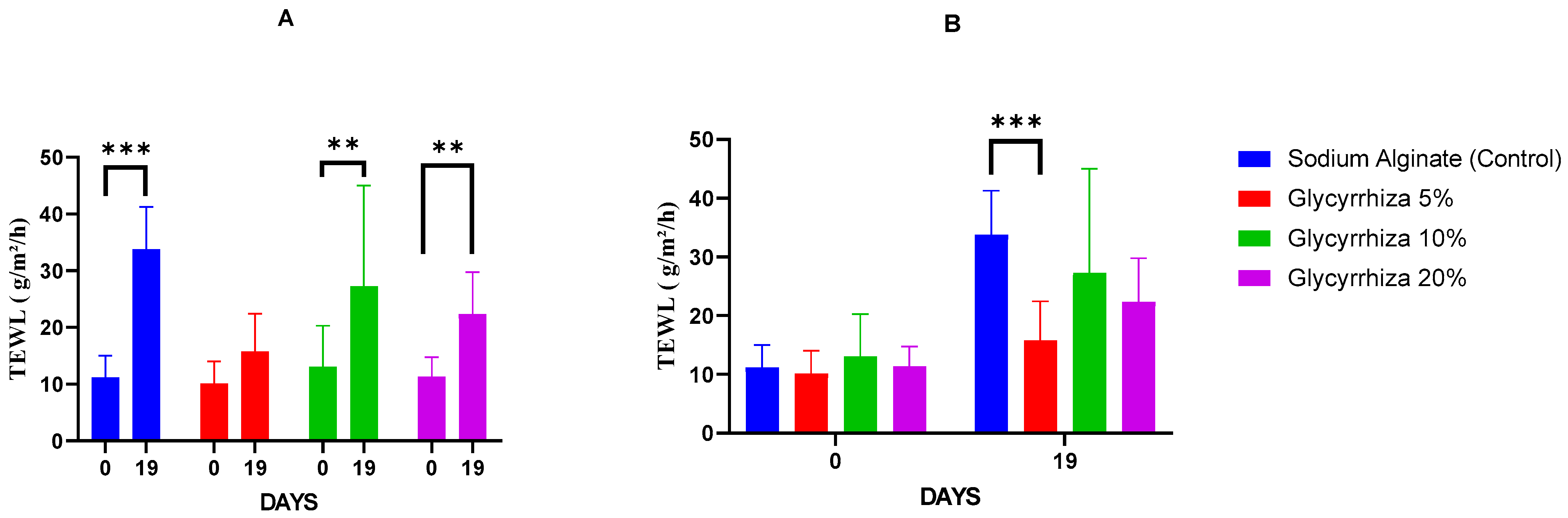 4.4.2. Evaluation of Transepidermal Water Loss (TEWL)