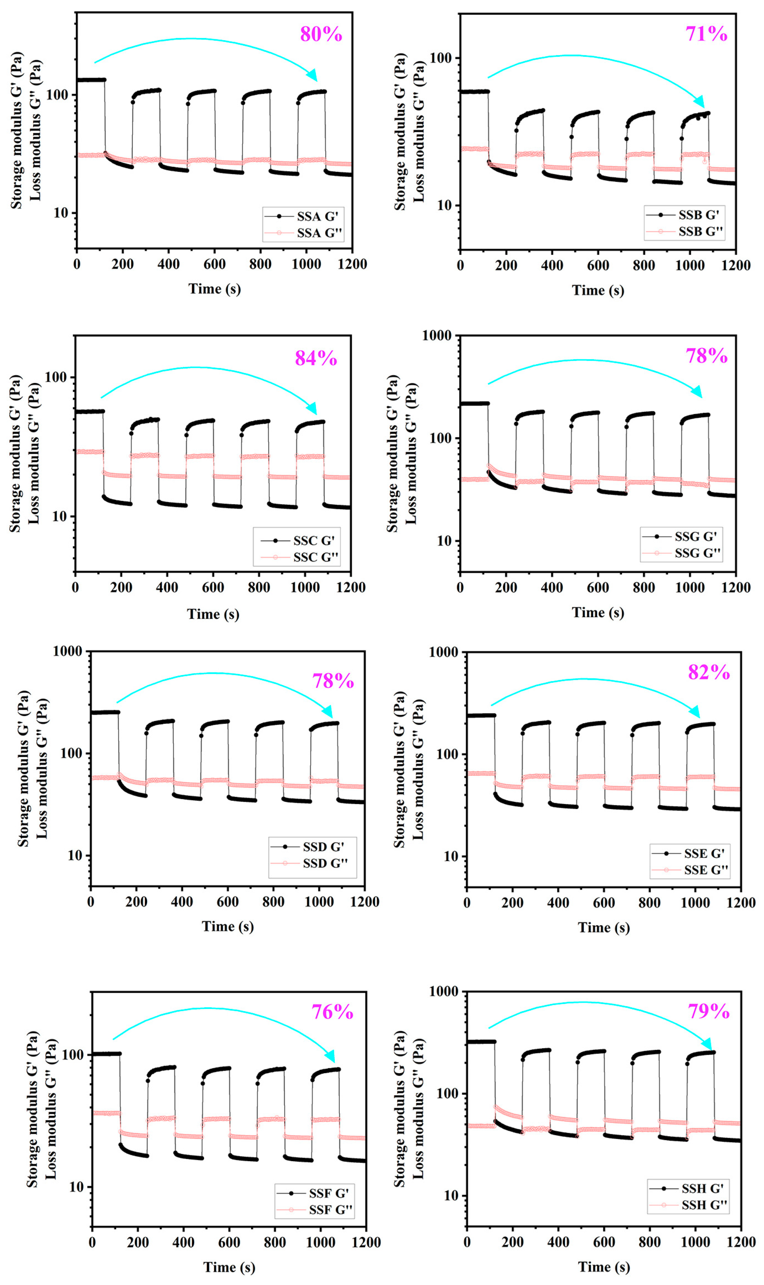 2.4.4. Analysis of Cyclic Strain Time Sweep (CSS)