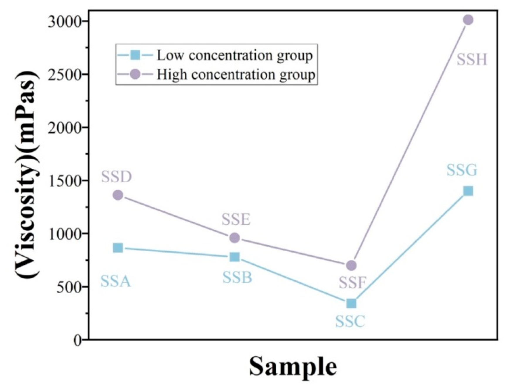 - Fan, Z.; Cheng, P.; Gao, Y.; Wang, D.; Jia, G.; Zhang, P.; Prakash, S.; Wang, Z.; Han, J. Understanding the rheological properties of a novel composite salecan/gellan hydrogels. Food Hydrocoll. 2022, 123, 107162. [Google Scholar] [CrossRef]