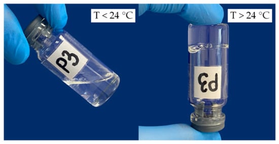 It was found that the nasal in situ temperature-sensitive gels remained fluid at temperatures below 24 °C, but rapidly gelled after heating above 24 °C (Figure 3).
