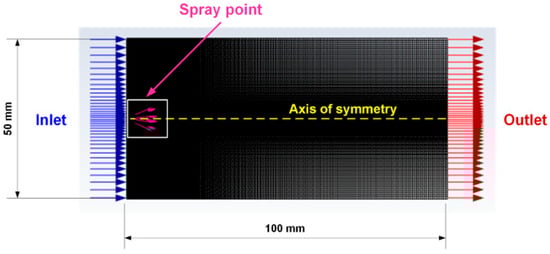 Based on the obtained results of the computational experiments, it was concluded that the spray angle is highly dependent on the viscosity of the formulations: the higher the viscosity, the smaller the spray angle. These results are consistent with the experimental data obtained using the SprayVIEW measuring system. The highest droplet velocity was observed in the central part of the spray cone, while the velocity decreased at the periphery. The droplet size also depends on the viscosity and increases with increasing viscosity. For formulation P2, which had the largest spray angle (20°) and the lowest viscosity of 18.22 mPa·s, the maximum droplet size was 3.95·10−7 m, while for formulation PC2, which had the smallest spray angle (12°) and the highest viscosity of 68.13 mPa·s, the maximum droplet size was 5.35·10−5 m.