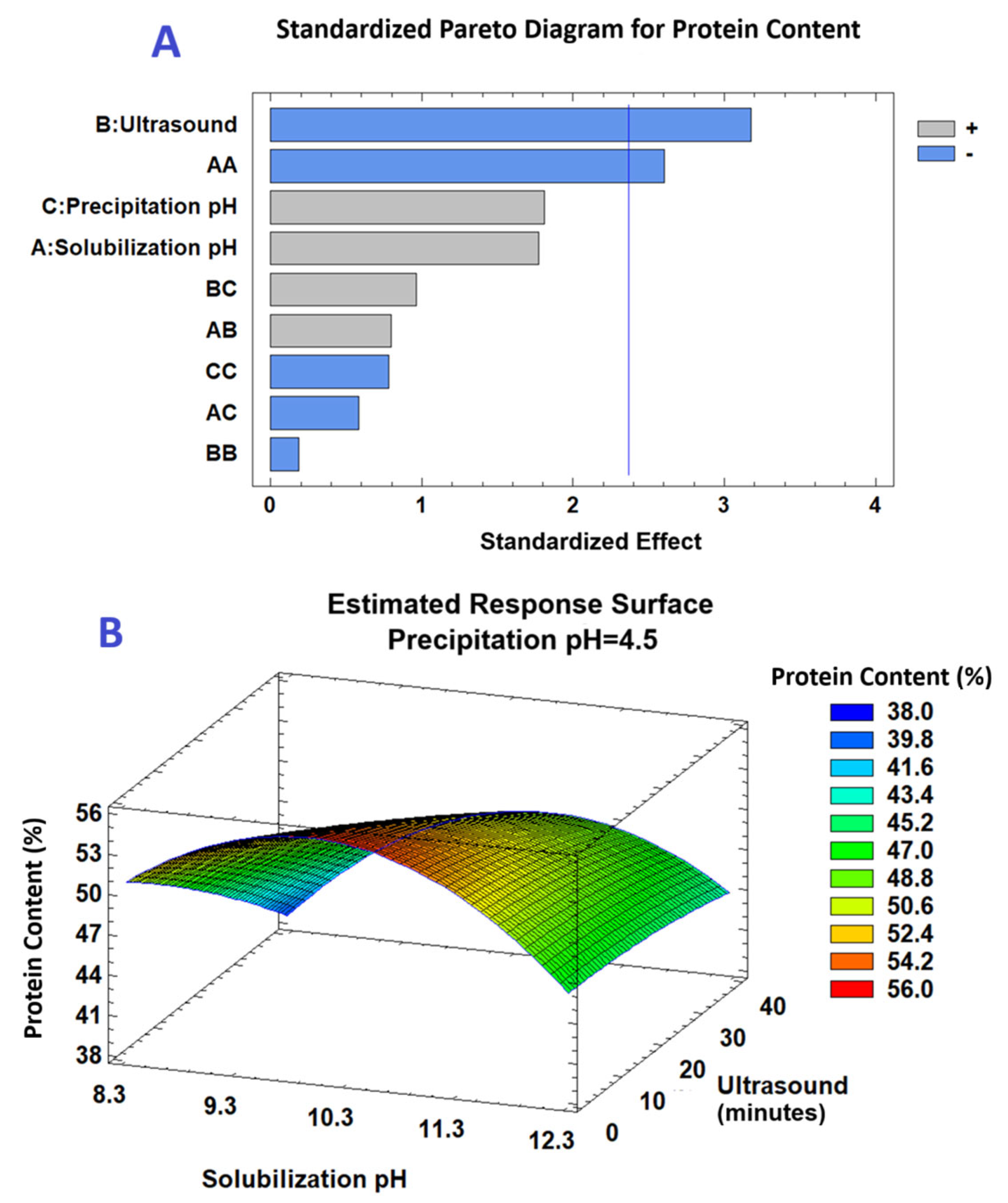 Experimental Run | Solubilization pH | Extraction Time (min) | Precipitation pH | Extraction Yield (%) | Protein Content (%) |