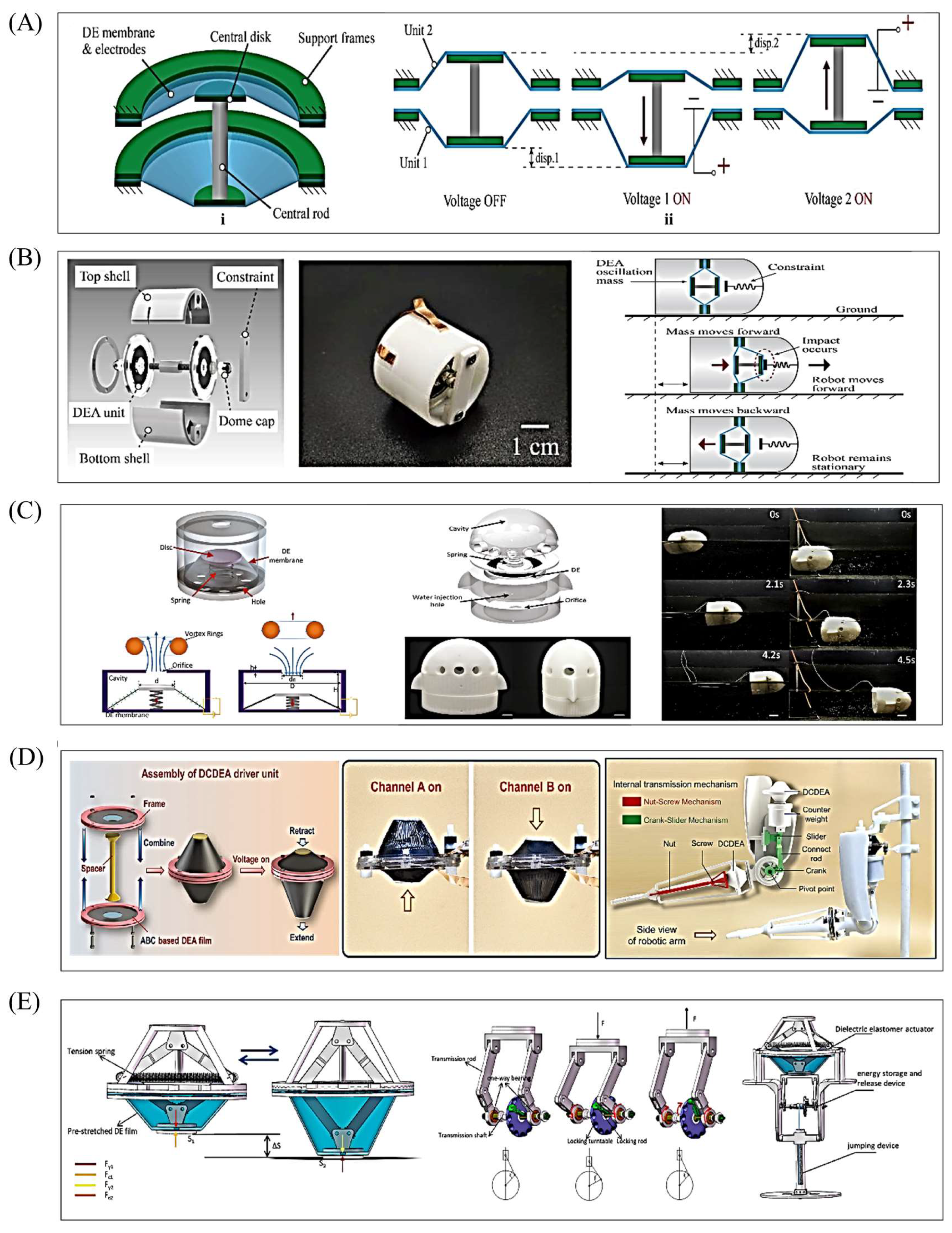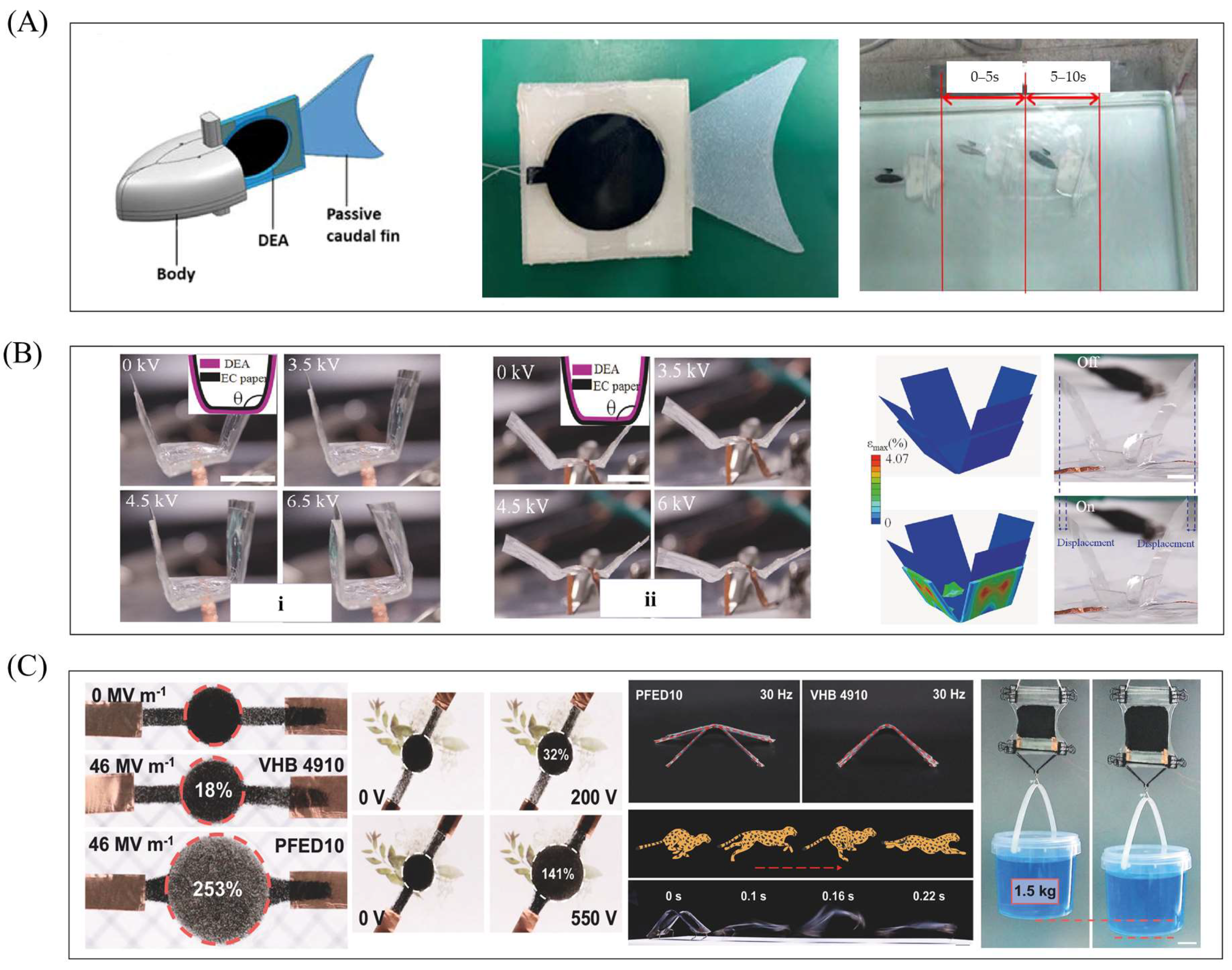 - Feng, W.; Sun, L.; Jin, Z.; Chen, L.; Liu, Y.; Xu, H.; Wang, C. A large-strain and ultrahigh energy density dielectric elastomer for fast moving soft robot. Nat. Commun. 2024, 15, 4222. [Google Scholar] [CrossRef] [PubMed]