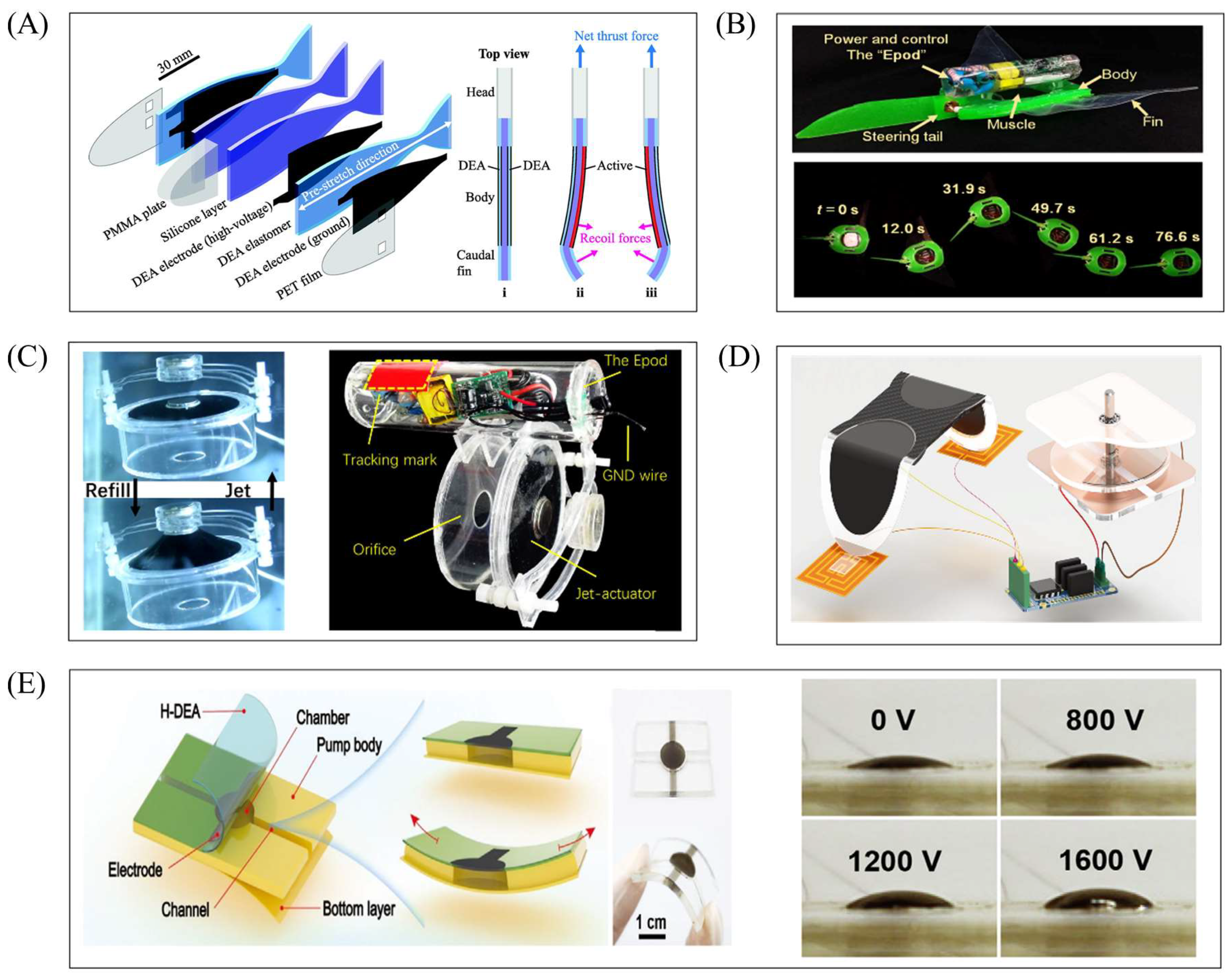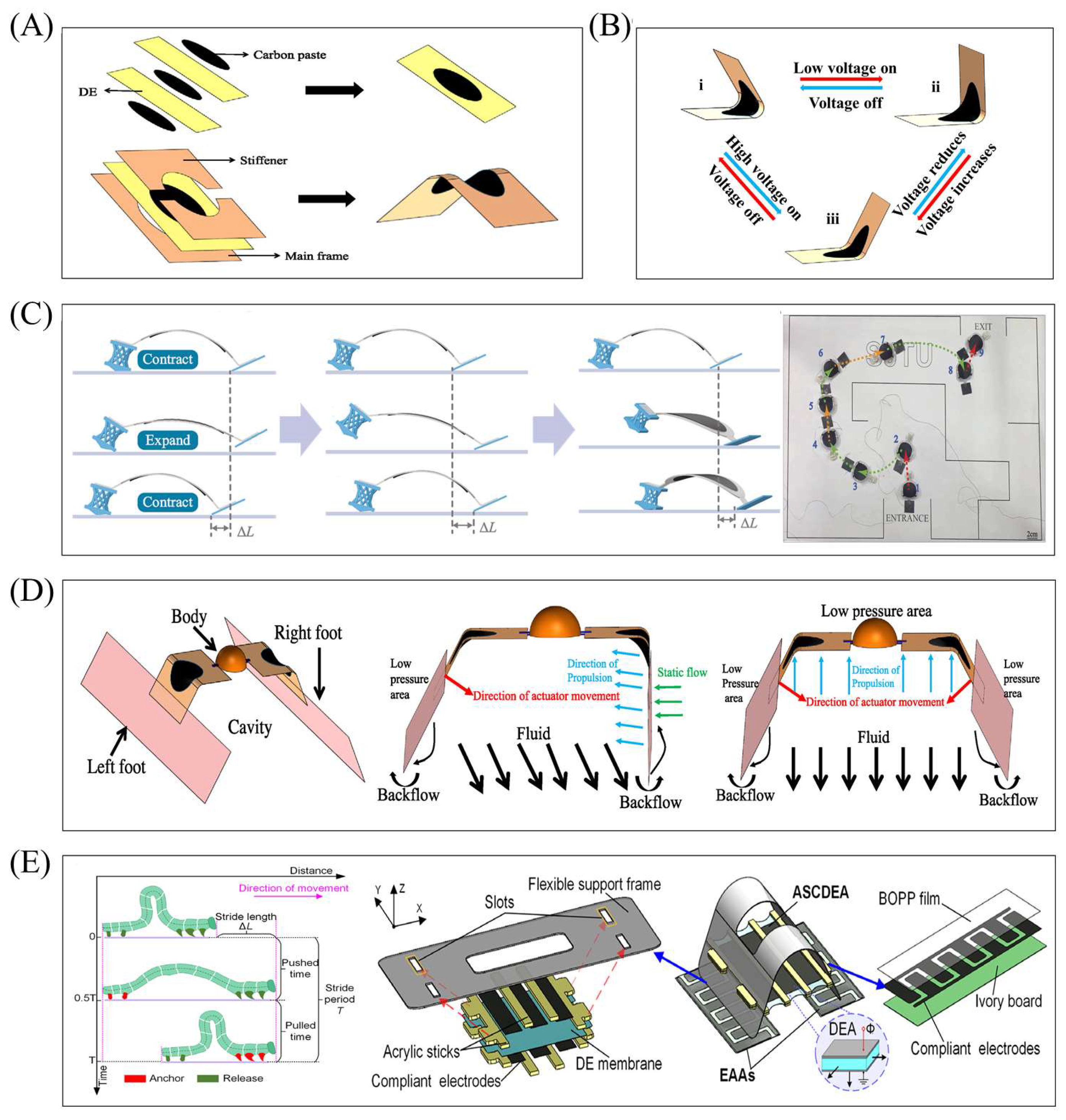 - Wang, L.; Zhuo, J.; Peng, J.; Dong, H.; Jiang, S.; Shi, Y. A Stretchable Soft Pump Driven by a Heterogeneous Dielectric Elastomer Actuator. Adv. Funct. Mater. 2024, 34, 2411160. [Google Scholar] [CrossRef]