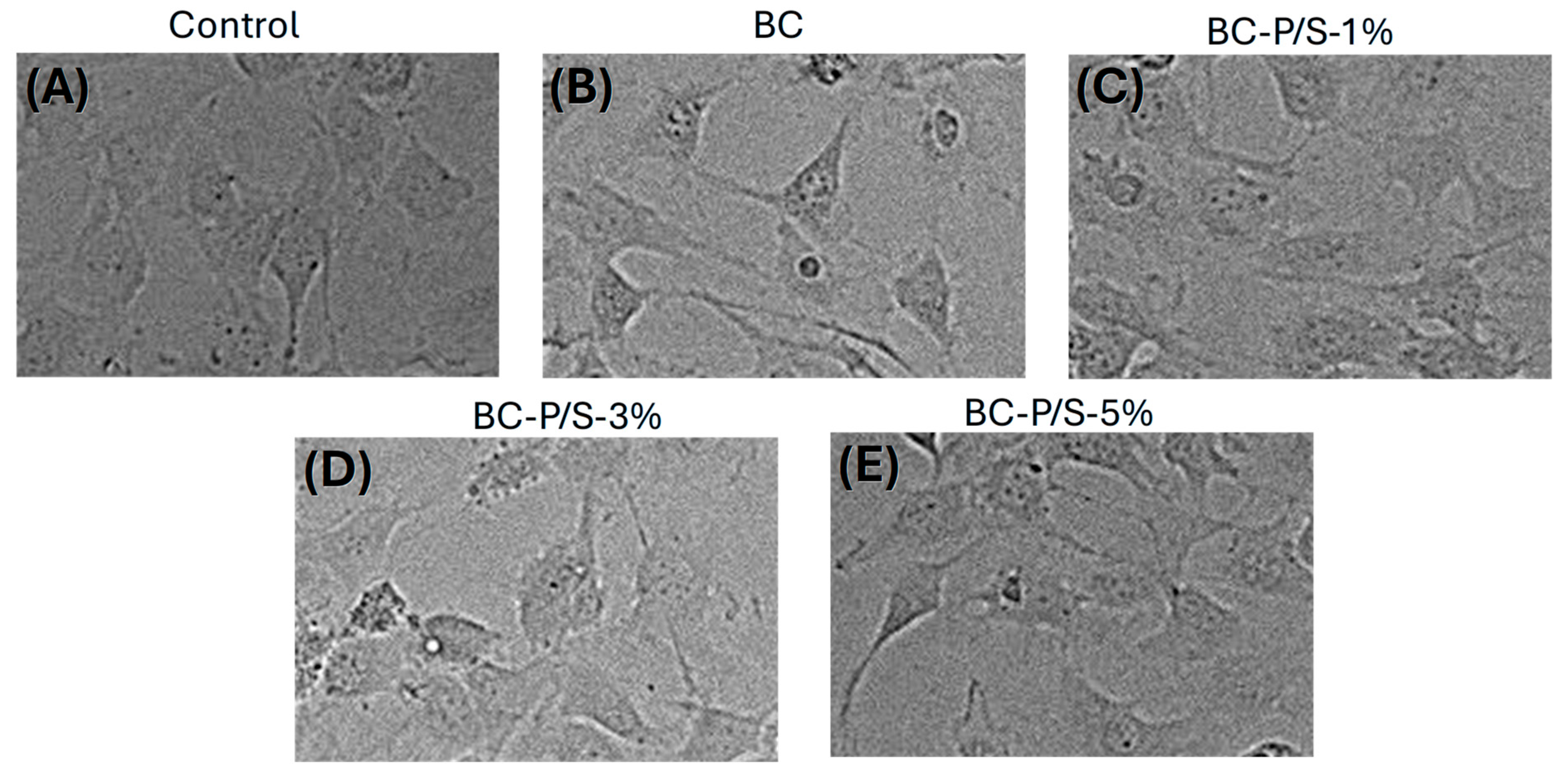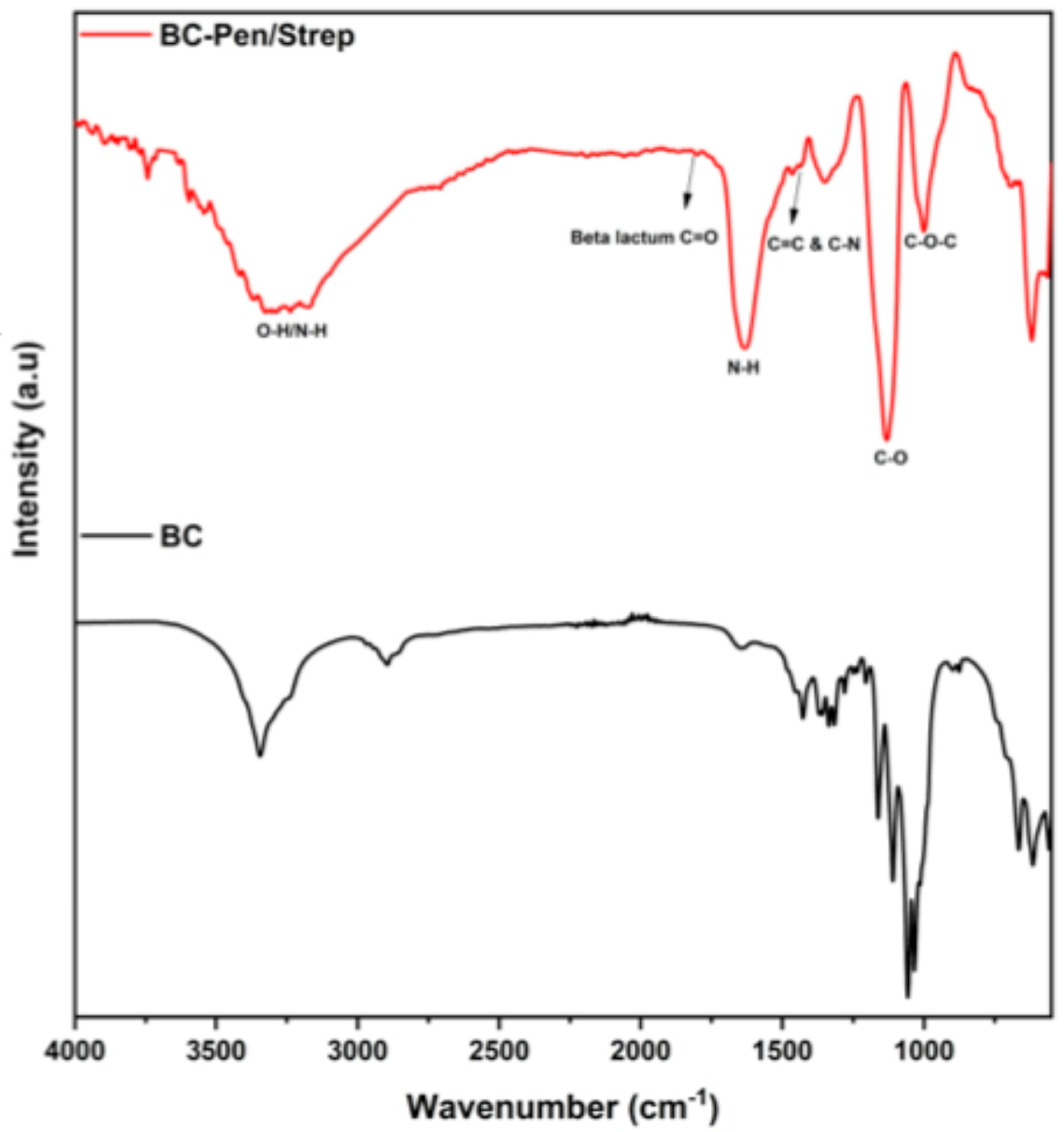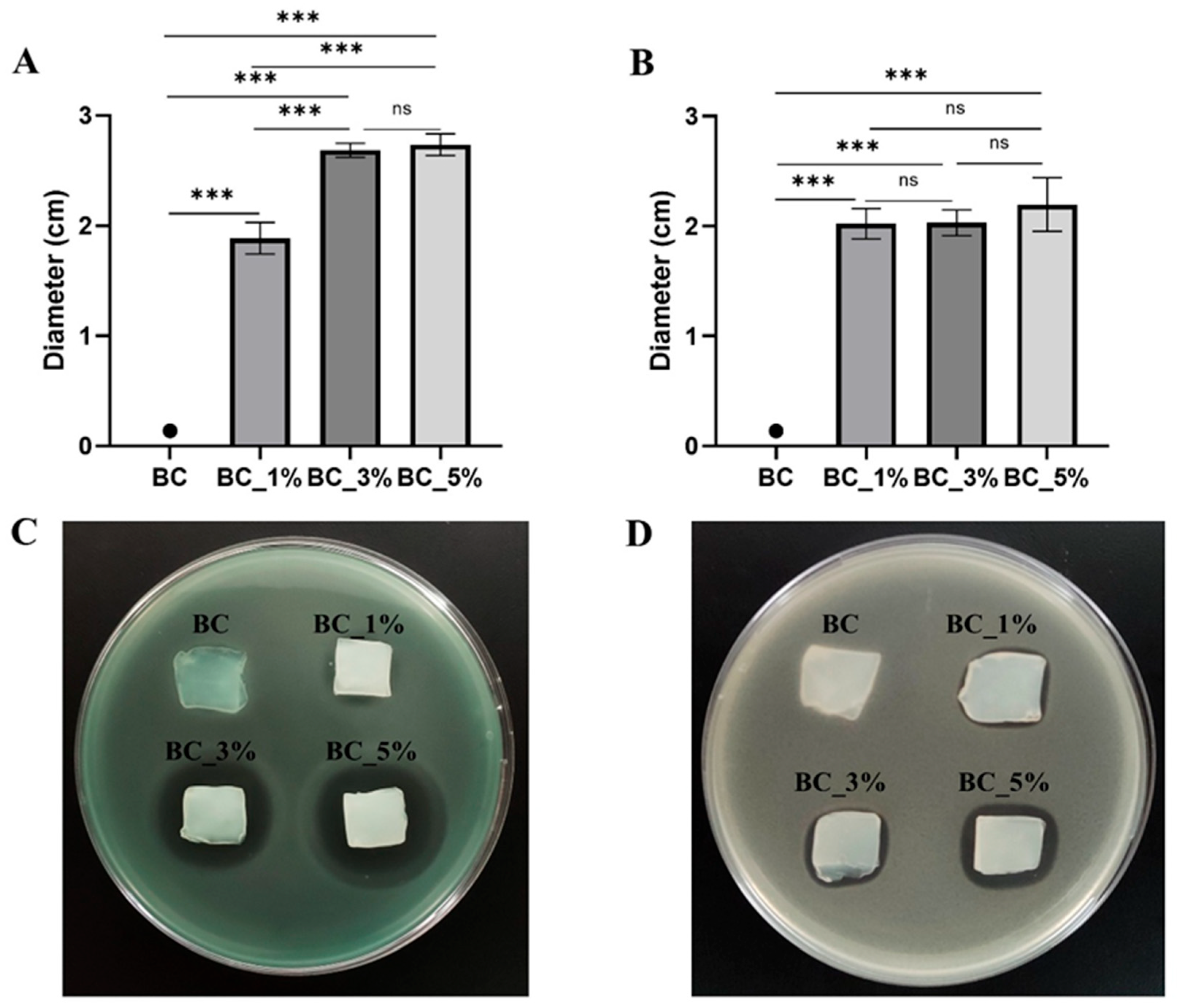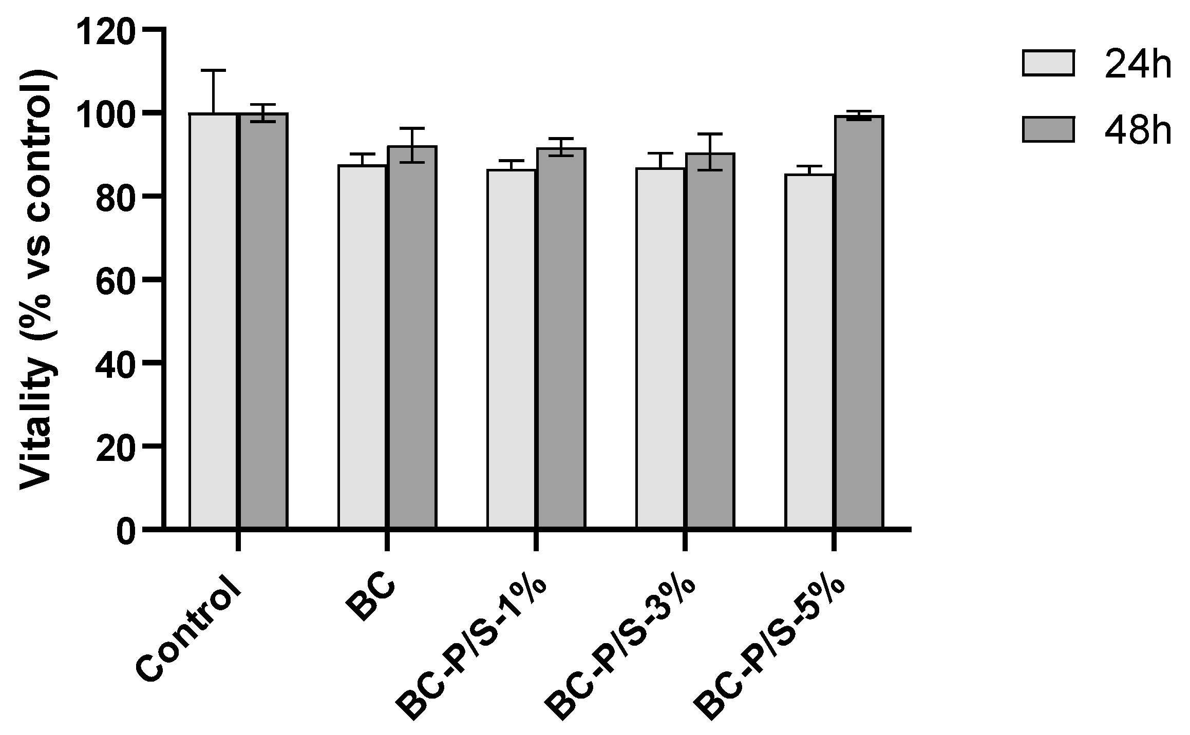 2.4. Antimicrobial Properties of Pen/Strep and Pen/Strep-Loaded BC Hydrogels