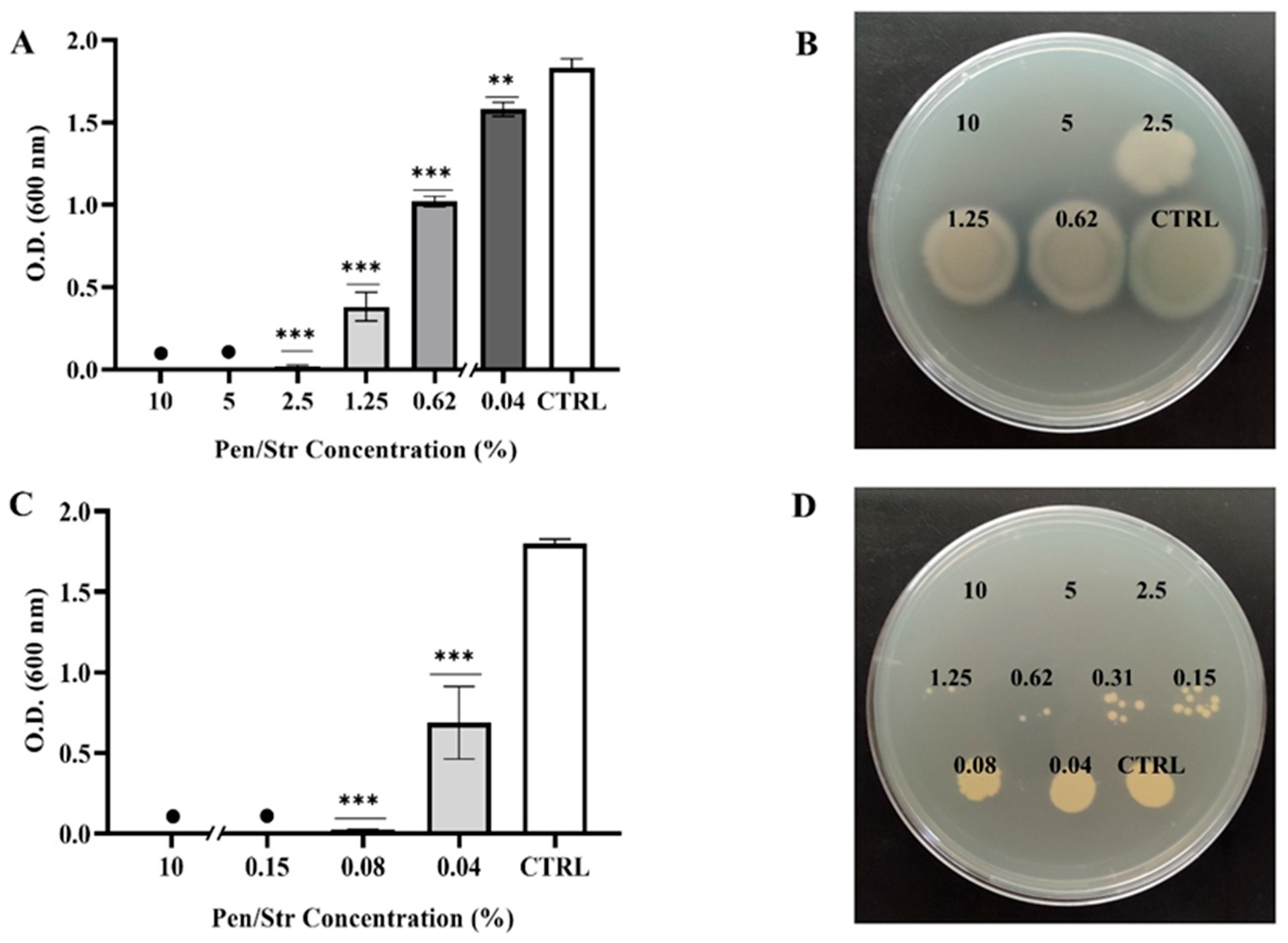 4.3.7. Determination of Minimal Inhibitory Concentration (MIC) and Minimal Bactericidal Concentration (MBC)