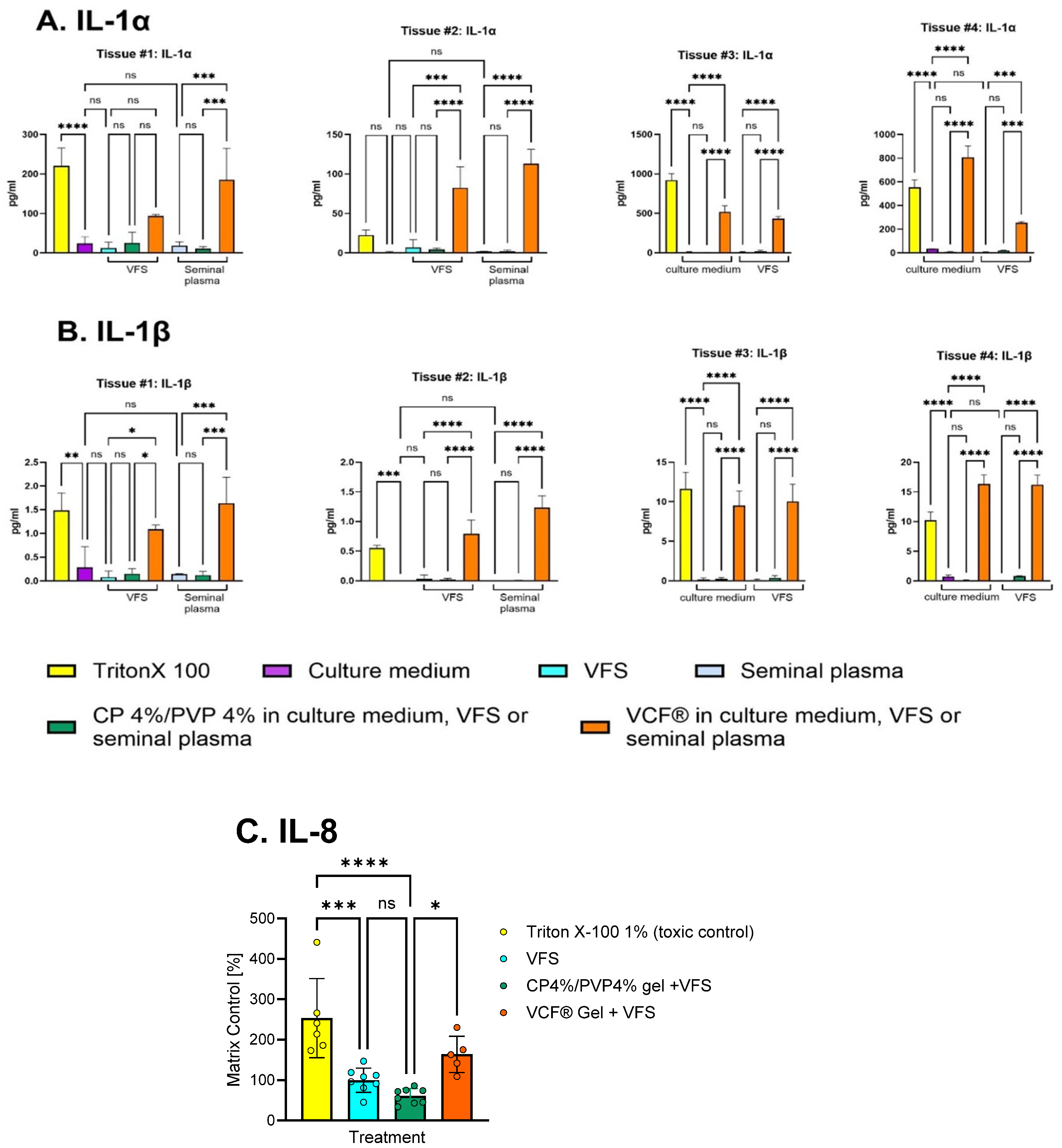 - Fichorova, R.N.; Bajpai, M.; Chandra, N.; Hsiu, J.G.; Spangler, M.; Ratnam, V.; Doncel, G.F. Interleukin (IL)-1, IL-6, and IL-8 predict mucosal toxicity of vaginal microbicidal contraceptives. Biol. Reprod. 2004, 71, 761–769. [Google Scholar] [CrossRef]
