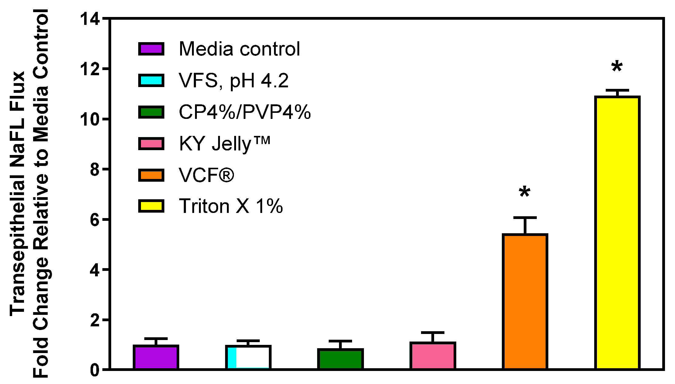 - Coleman, J.S.; Fuchs, E.; Aung, W.S.; Marzinke, M.A.; Bakshi, R.P.; Spiegel, H.M.L.; Robinson, J.; Hendrix, C.W. Feasibility of radiolabeled small molecule permeability as a quantitative measure of microbicide candidate toxicity. Contraception 2016, 93, 331–336. [Google Scholar] [CrossRef][Green Version]