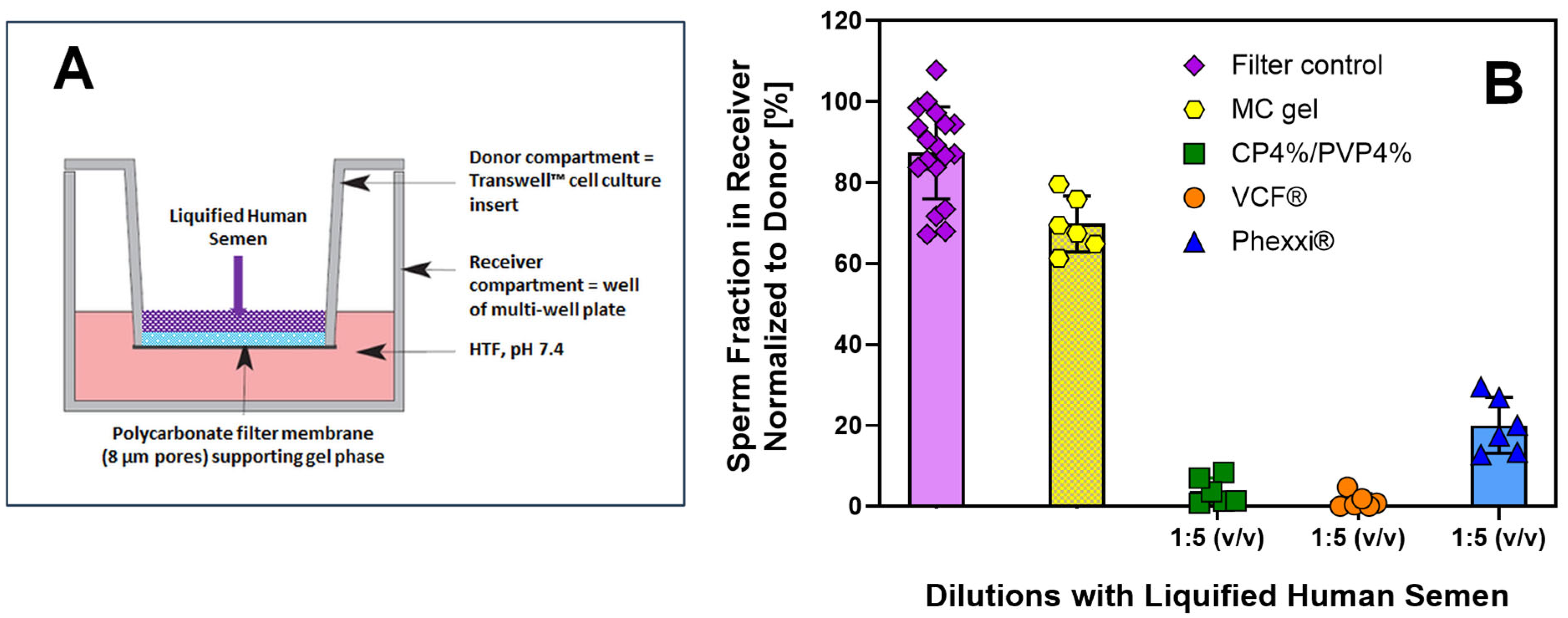 Pauletti GM, Dwivedi P, Li P, Borrego-Alvarez A, Yamamoto HS, Lewis J, Alobaidi S, Ibrahim A, Fichorova RN, Santi CM. Bioresponsive Hydrogel for On-Demand Nonhormonal Contraception. Gels. 2025; 11(11):858. https://doi.org/10.3390/gels11110858