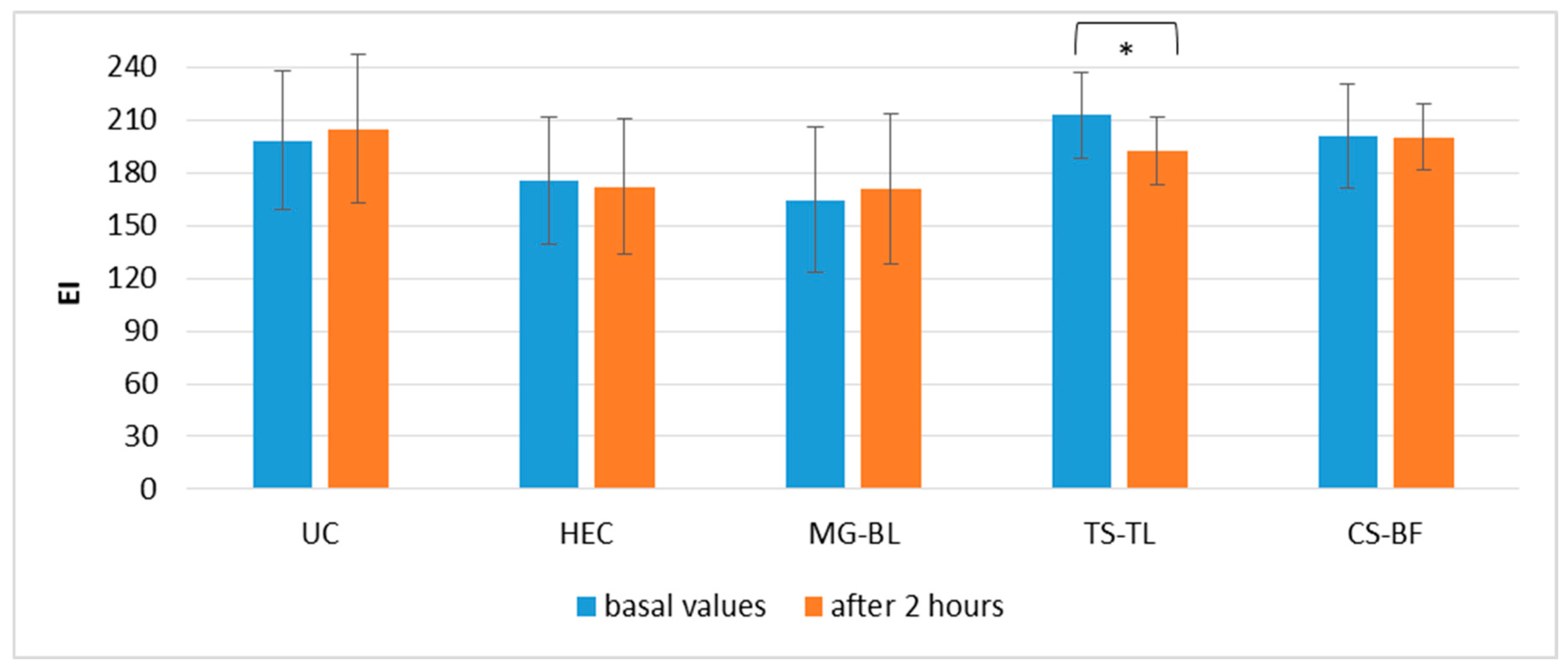 4.7.2. Evaluation of the Short-Term Effect of NaDES-Based Gels