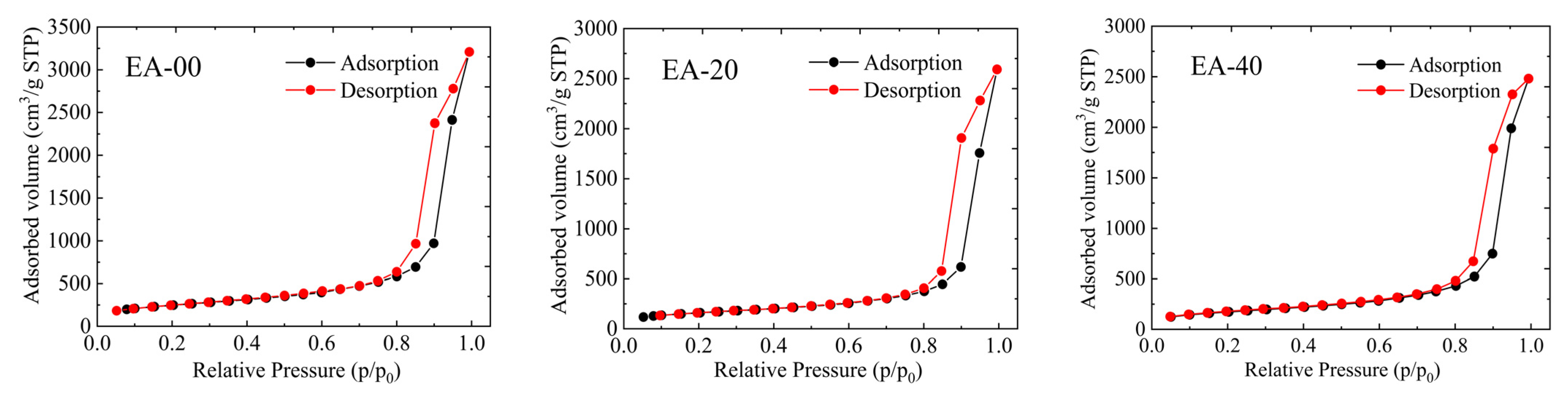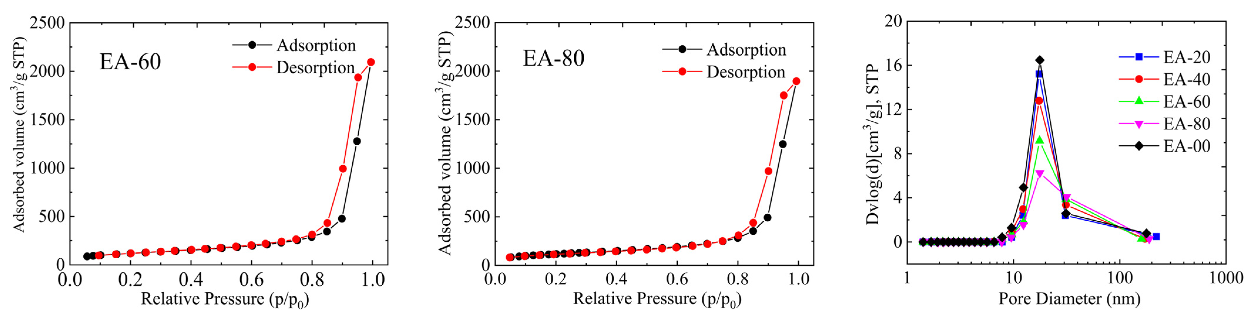 - Zhang, T.; Sun, Z.; Lu, Z.; Yang, H.; Yan, Z.; Ji, Y. Investigation on the Pore Structure and Adsorption Capacity of Silica Aerogels Prepared with Different Cations. J. Mater. Sci. 2023, 58, 6602–6617. [Google Scholar] [CrossRef]