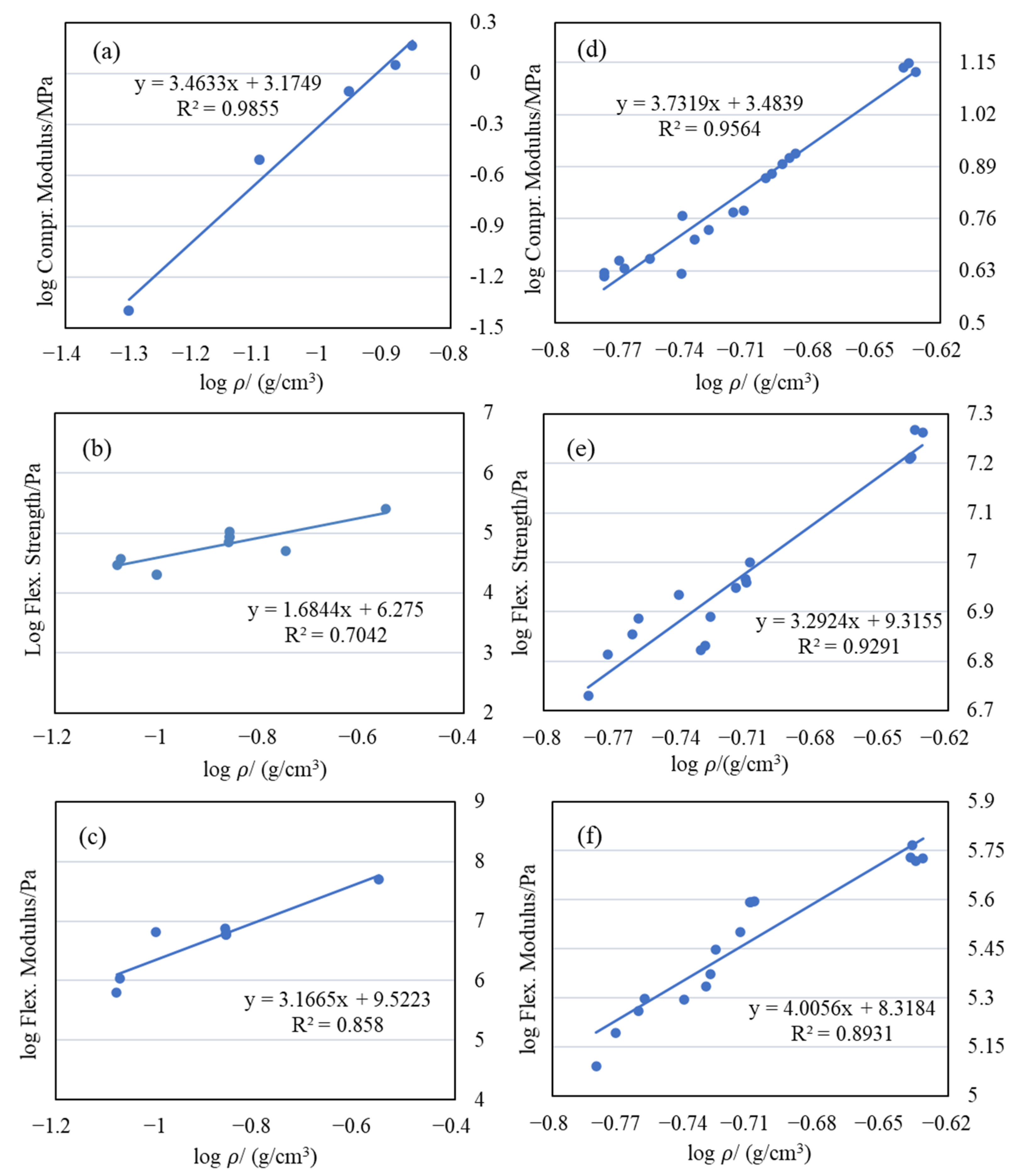 | Samples | Density (g/cm3) | Flex. Strength (MPa) | Flex. Modulus (MPa) | Compr. Strength (MPa) | Compr. Modulus (MPa) |